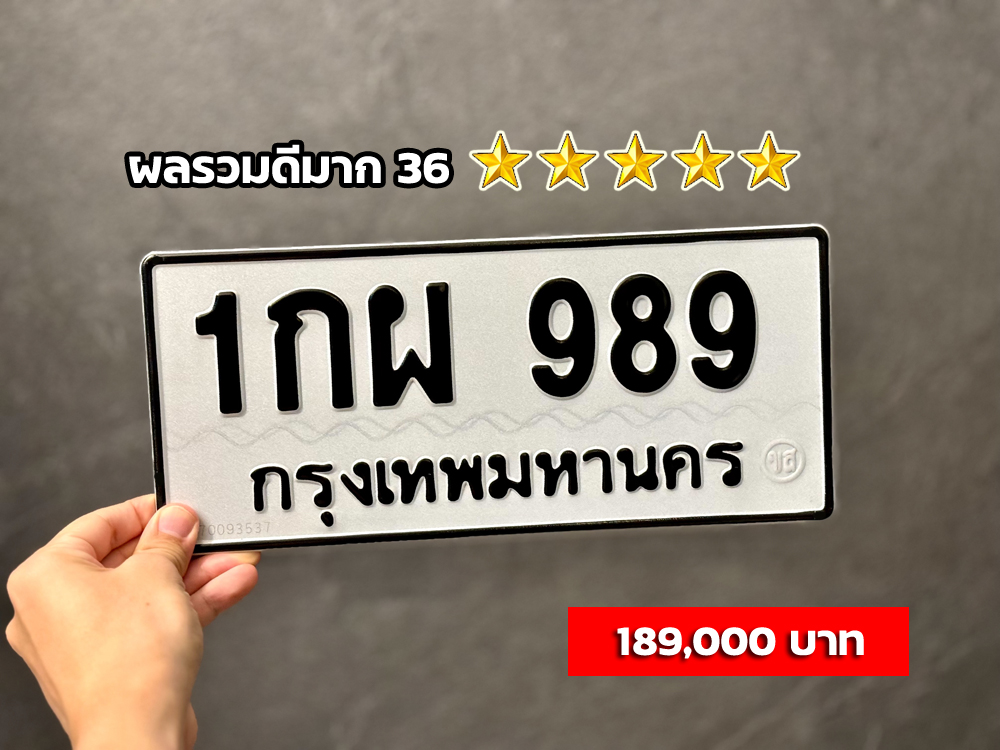 ขายทะเบียนรถ 1กผ 989 มาแล้วค่ะ! ป้ายขาวดำ หมวดเก่าหายาก ผลรวมดี 36