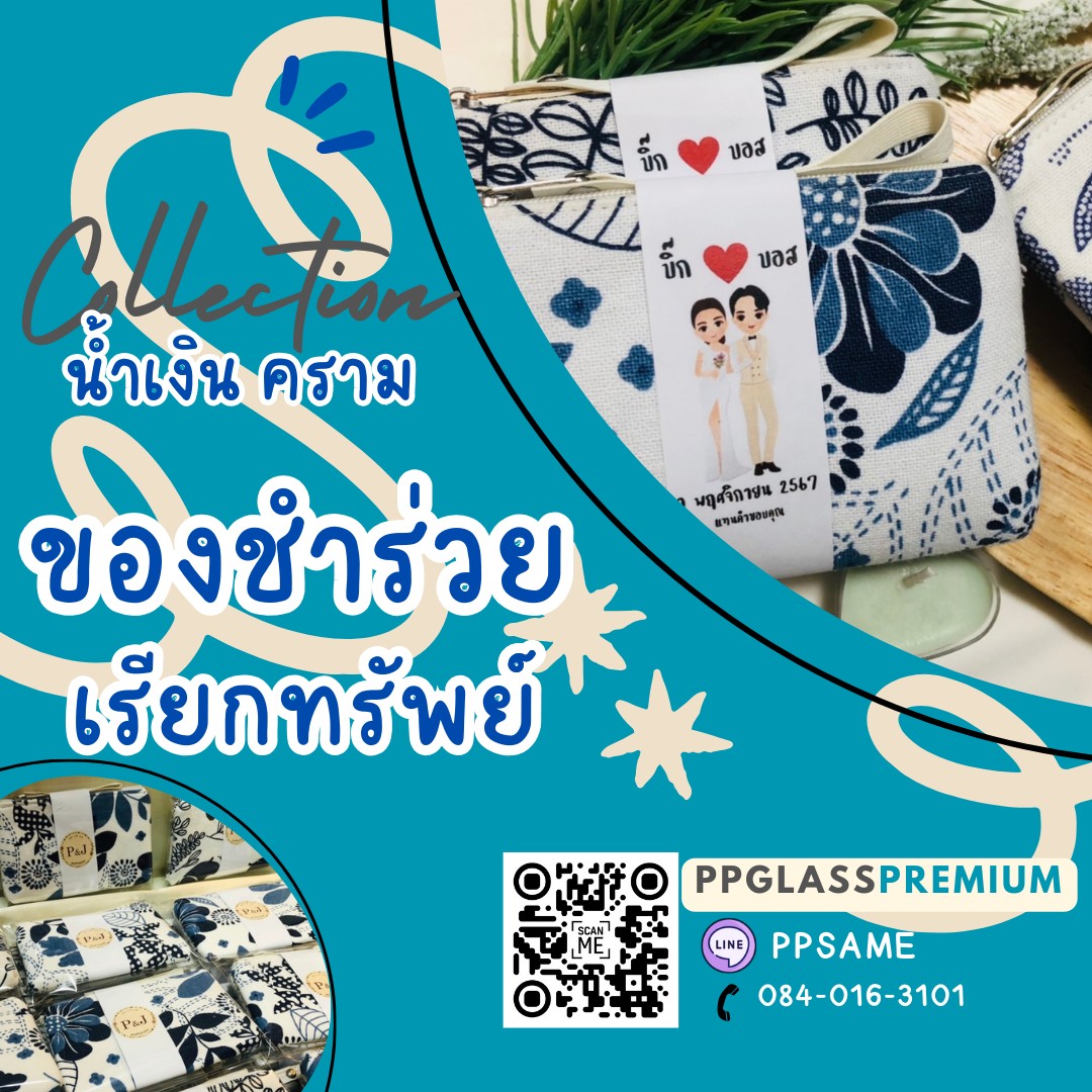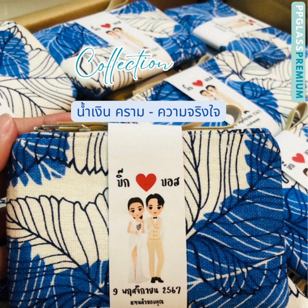 👛 ของชำร่วย กระเป๋าผ้า กระเป๋าสตางค์ (น้ำเงิน คราม)👛