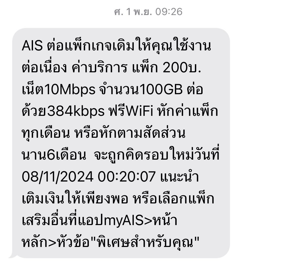 มีการส่งข้อความมาต่อแพคเกจอินเตอร์เน็ตให้แต่ไม่หักค่าบริการ