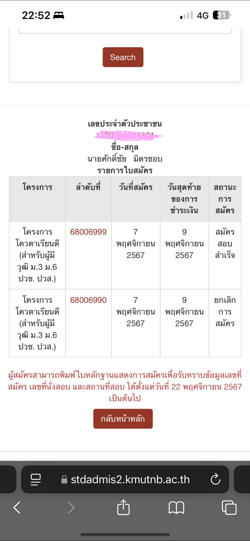 สอบถามหน่อยครับ ทำไมของผมไม่ขึ้นเหมือนของเพื่อนหรอครับ ของผมคือศักดิ์ชัย มิตรชอบ ทำไมของผมไม่ขึ้นเหมือนของเพื่อนแต่ว่าการสมัครในครั้งแรก ผมสมัครเสร็จแล้วแต่ยังไม่ได้โอนตังเพราะว่าผมใส่ข้อมูลผิดเลยยกดลิกการสมัครในครั้งแรก แล้วผมก็สมัครครั้งที่ 2 ในวันเดียวกันกับที่สมัครครั้งแรก ในครั้งที่ 2 ผมจ่ายเงินเรียบร้อยแล้วด้วยครับ ทำเสร็จแล้วทุกขั้นตอน