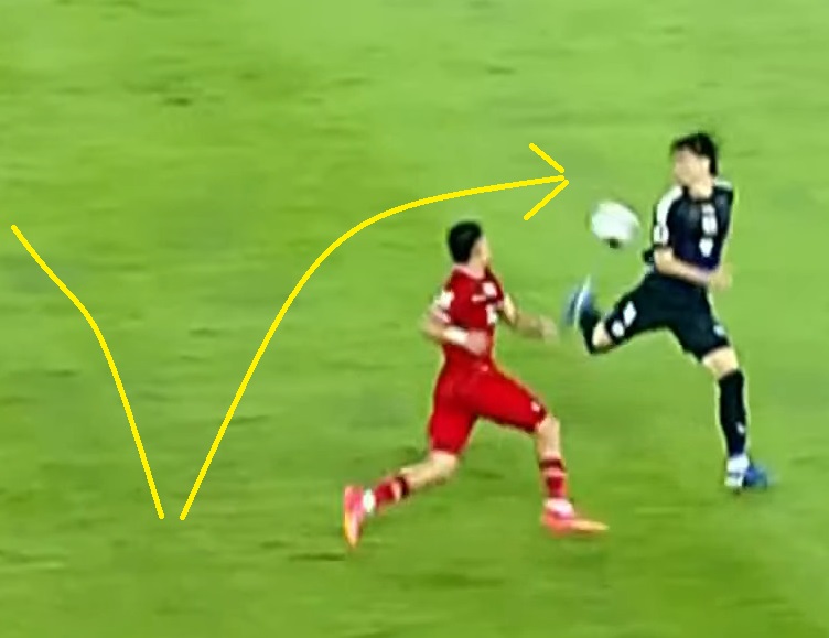 หลังจากลูกนี้ก็ยังมีอีกสองครั้ง ที่กองหลังญี่ปุ่นกะจังหวะบอลผิด ถัดจากนั้นมา เลยต้องเตะทิ้งเป็นหลัก ไม่เสี่ยง