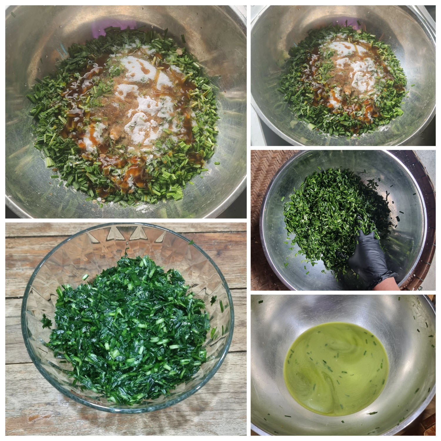 ผมได้ใบกุยช่าย มา เยอะเลย ไม่รู้จะทำอะไร ไม่เคยทำมาก่อนเลย งานนี้เลยต้องมาศึกษาจากหลายคลิป เลยทำเป็น 2 สูตร