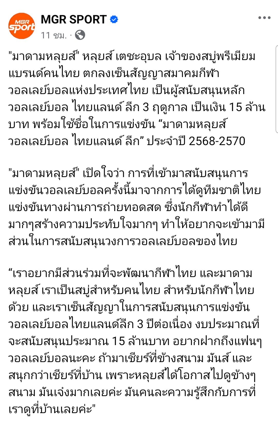🤗 "มาดามหลุยส์" จัดให้ 15 ลบ. วอลเลย์บอลไทยแลนด์ลีก 3 ปี 📌 โปรแกรมถ่ายทอดสด 📺