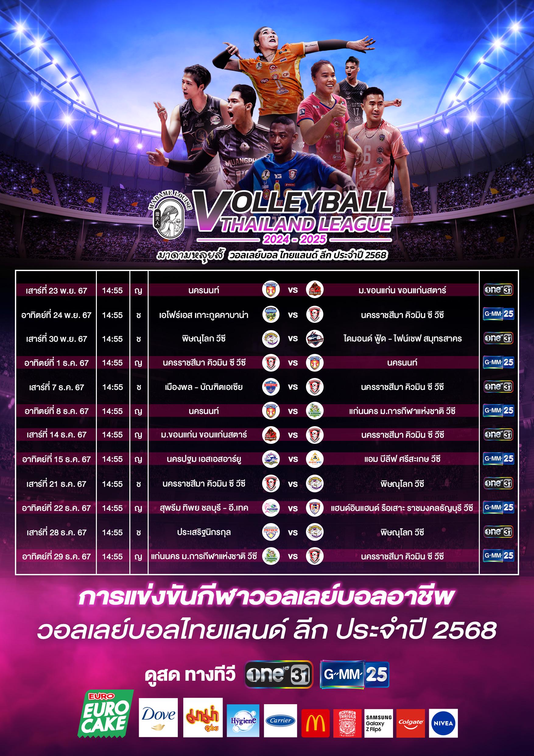 วอลเลย์บอลไทยแลนด์ลีก ตารางแข่งวันเสาร์ที่ 1 ก.พ. 68