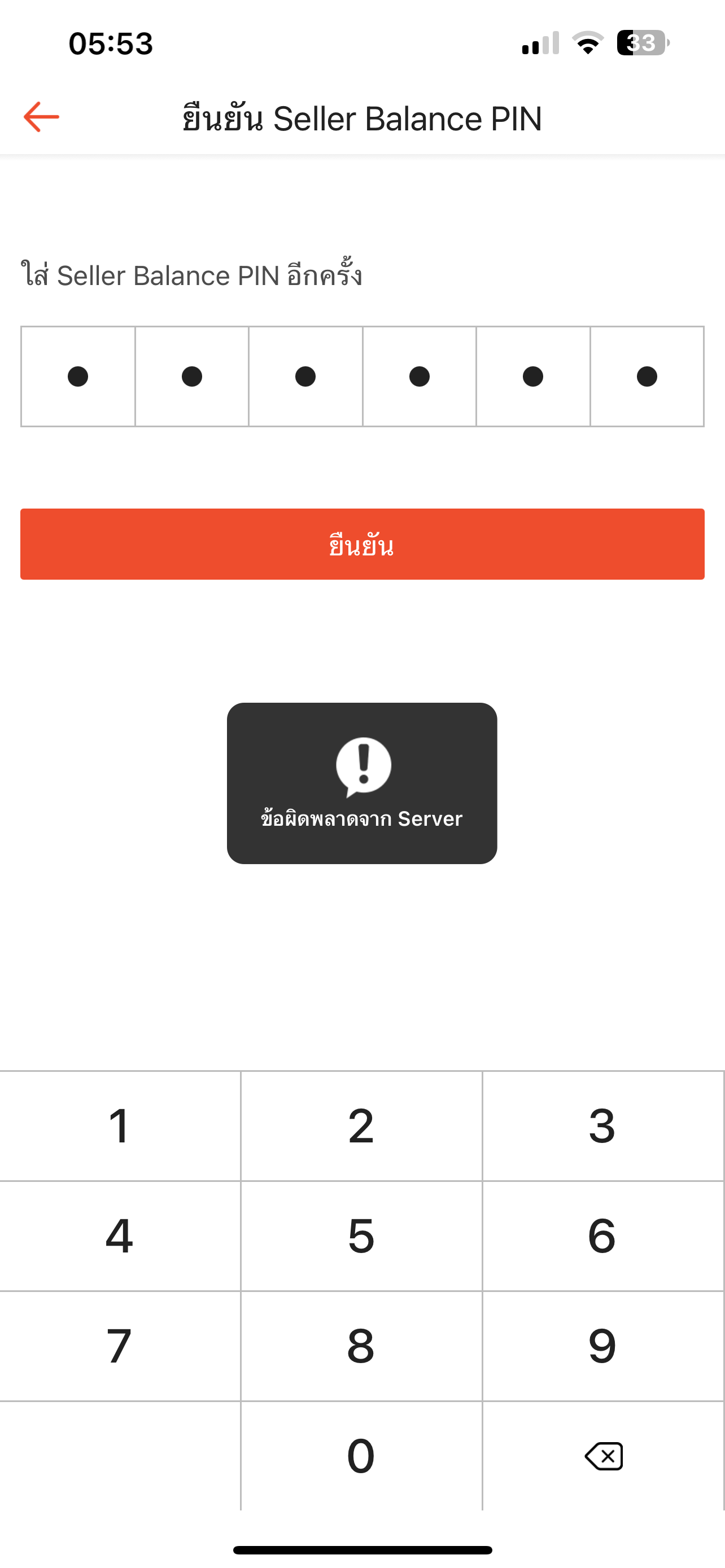 จะโอนเงินจาก seller balance เข้าธนาคาร แต่ลืมรหัสผ่านเลยกดลืมรหัสผ่าน แล้วมันให้ตั้งรหัสผ่านใหม่ แต่พอกดยืนยันมันขึ้นว่า ข้อผิดพลาดจาก server ต้องทำยังไงคะ