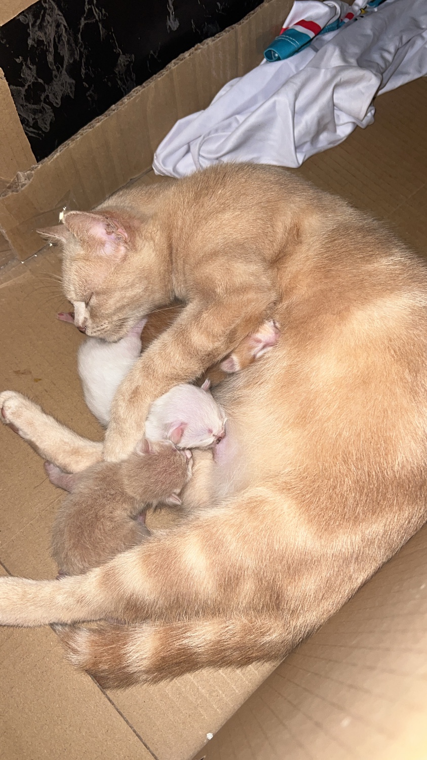 นี่เป็นคนไม่ค่อยชอบแมว พอดีที่บ้านหนูเยอะมาก เลยมีคนไปเจอลูกแมว2ตัวตายังไม่เปิดเลยถูกเอามาทิ้ง เอามาให้เราเลี้ยง เราก็เลี้ยงไม่เป็นตามมีตามเกิด จนตอนนี้น้องโต คลอดลูก เต็มบ้าน จาก2 ตอนนี้มี 7 แล้ว เงิ