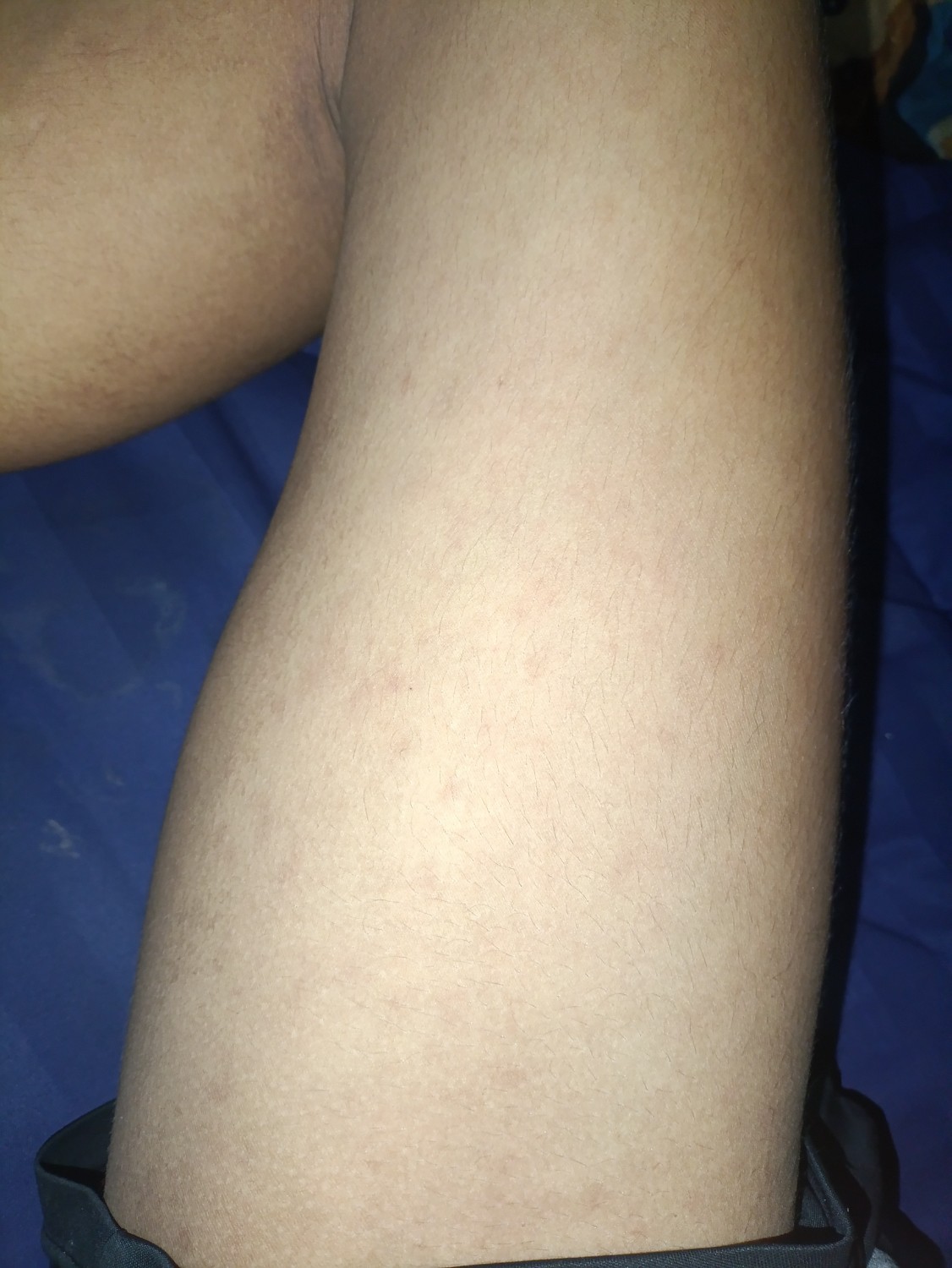 คือเราเป็นผื่นแบบนี้มาเกือบเดือนแล้วค่ะ มันเป้นจุดเล็กๆเเดงๆตรงขาข้างขวาข้างเดียวเลยค่ะ เราอยากรู้ว่ามันคือผื่นอะไรต้องรักษายังไงคะ