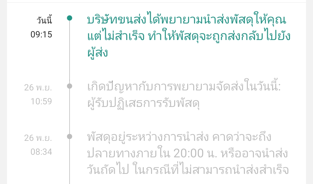 มันขึ้นแบบนี้หมายความว่ายังไงคะคือว่าสงสัยมากว่าเขาได้มาส่งแล้วหรือยังเพราะว่าไม่เห็นเลยคนที่บ้านก็บอกว่ามันยังไม่มีใครมาค่ะแล้วก็ทำยังไงให้มันไม่ตีกลับเหรอคะอาจจะผิดที่เราเองที่ไม่เห็นแต่ว่าคือเขาไม่ได้โทรแจ้งอะไรเลยค่ะว่ามาถึงแล้ว