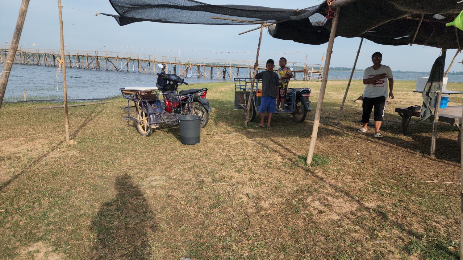 ชาวบ้านเลยร่วมแรงร่วมใจ ใครมีไม้(ตอไม้เป็นหลักให้สะพาน) ใครมีไม้ไผ่ก็ให้ไปตัดมาตัดเป็นตัวสะพานโดยการสาน ใครสะดวกออกแรงก็ช่วยๆกันทำจนเสร็จ ถือเป็นสะพานไม้ไผ่ที่ยาวที่สุดในจังหวัดอุบลราชธานี โดยมีความยาวประมาณ 400 เมตร (ผมวัดเองนะ)