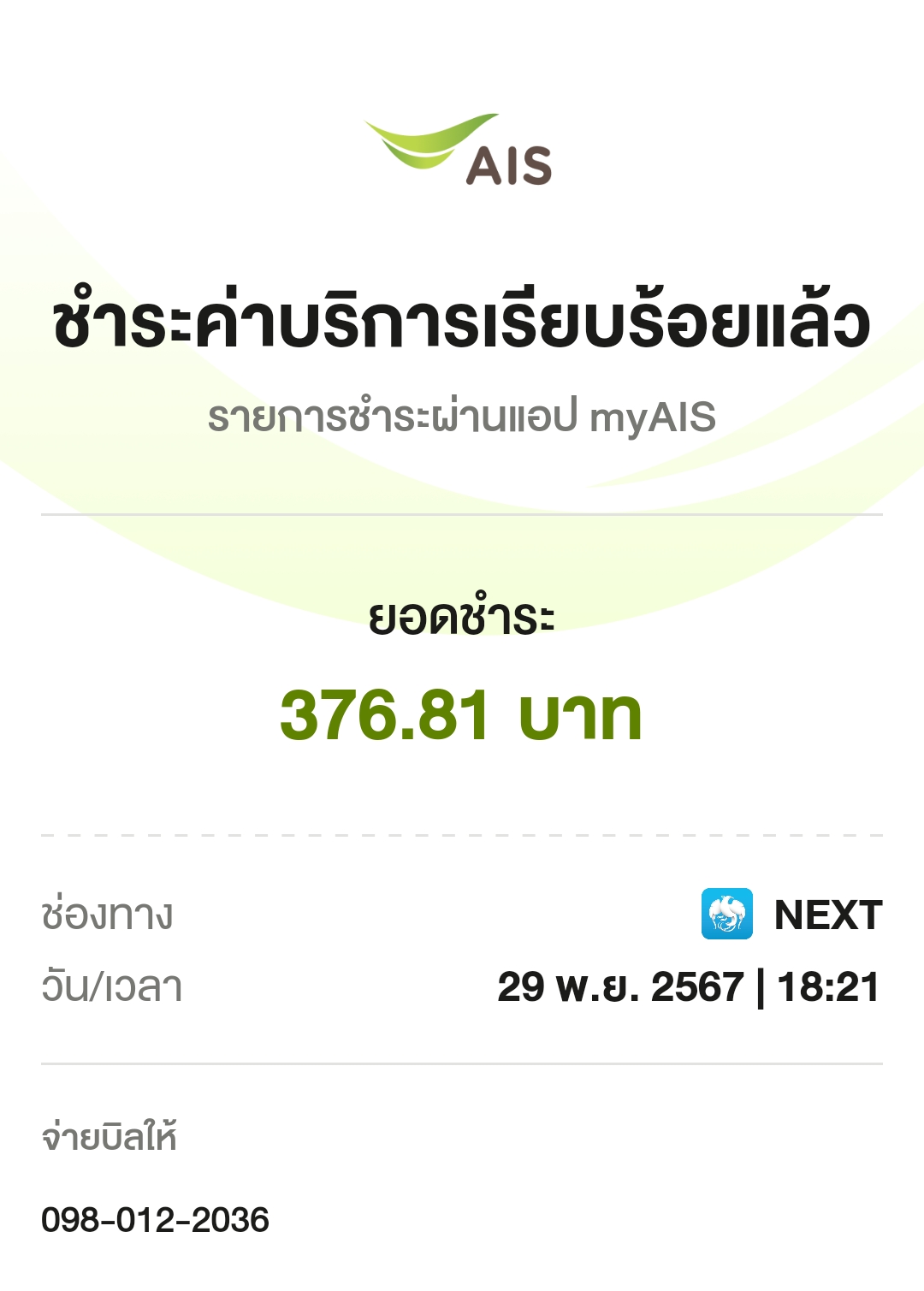 AIS รบกวนช่วยติดต่อเรื่องบิลรายเดือนทีครับ