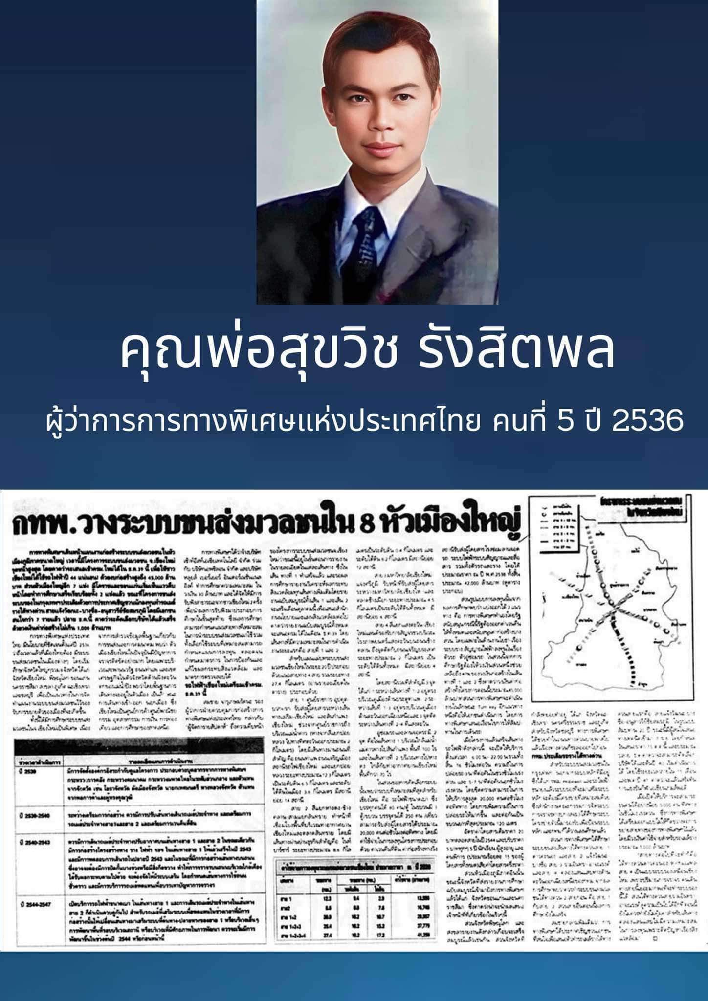ผลงานแก้ไขปัญหาจราจรคุณพ่อ สุขวิช รังสิตพลผู้ว่าการการทางพิเศษแห่งประเทศไทยคนที่ 5 ดำรงตำแหน่งระหว่างปี 2536-2537 ปี2536การทางพิเศษแห่งประเทศไทย (กทพ.) ได้วางโค