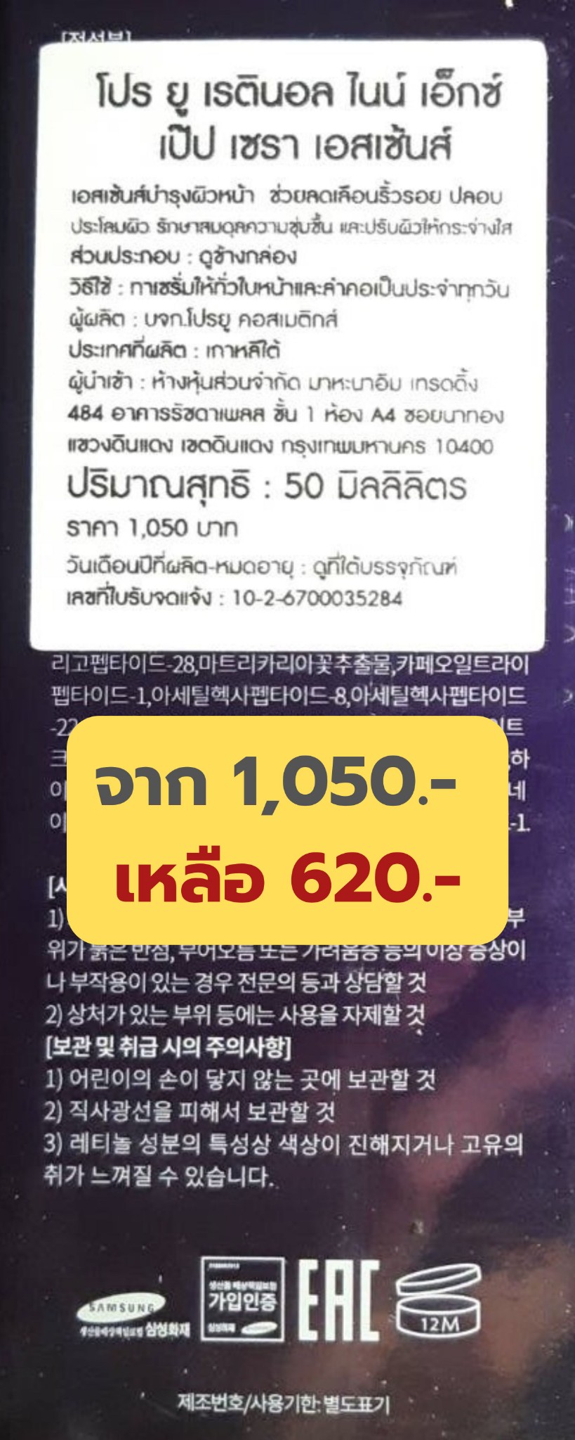 เซรั่มเรตินอล จากเกาหลี ใช้ได้ทั้งกลางวันและกลางคืน PRO YOU RETINOL 9X PEP CERA ESSENCE ผสาน Peptide 9 ชนิด