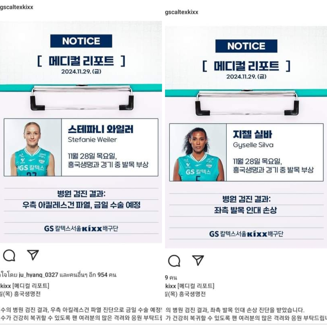 อาการบาดเจ็บของผู้เล่นต่างชาติทั้ง2คนของ GS CALTELX เพื่อนๆว่ามีโอกาสได้เปลี่ยนโควต้ามั้ยคะ😅😅😅😅