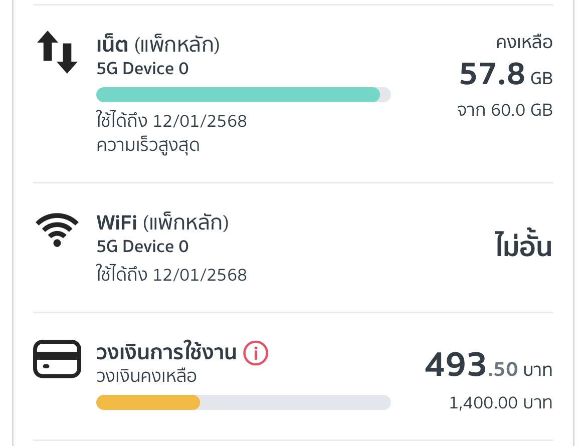 เบื้องต้นใช้เน็ตทรูรายเดือนค่ะ เดือนละประมาณ 320 แต่รอบเดือนที่ผ่านมาครบกำหนดชำระแล้วแต่ยังไม่ได้ชำระก็คิดว่ามันจะตัดยอดไปแล้วเริ่มยอดของเดือนใหม่ แต่เพิ่งเห็นมันแจ้งเตืินข้อความเมื่อกี้ว่าครบวงเงินท