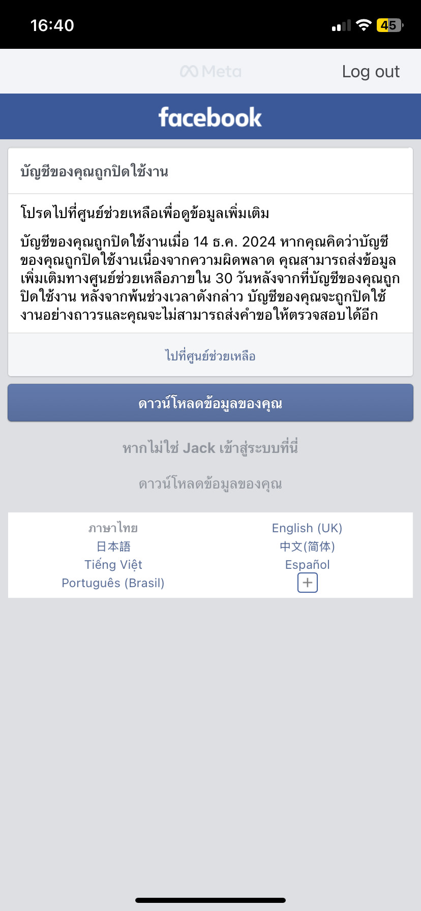 Facebook ผมโดนปิดแก้ได้มั้ยครับ