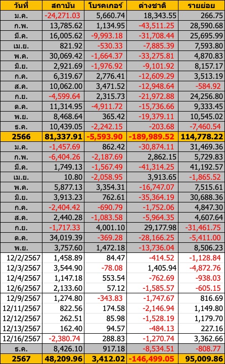 Sinthorn Summary 16/12/2567 : ต่างชาติขายสุทธิ -1,270.74 ลบ.
