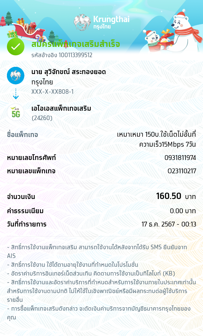 สมัครเน็ตในแอพAisโอนผ่านทางกรุงไทยตัดเงินแล้วแต่ไม่ขึ้นสมัครบริการ
