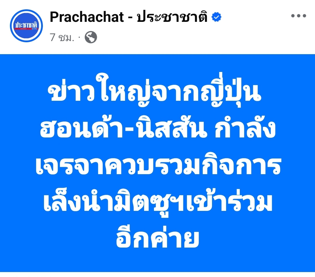 "ฮอนด้า-นิสสัน"ประกาศยกเลิกแผนควบรวมครั้งประวัติศาสตร์ หลังเจรจาเงื่อนไขไม่ลงตัว แต่ยังคงเดินหน้าความเป็นหุ้นส่วนทางยุทธศาสตร์ในด้านยานยนต์ไฟฟ้ากับมิตซูบิชิต่อไป 13 ก.พ