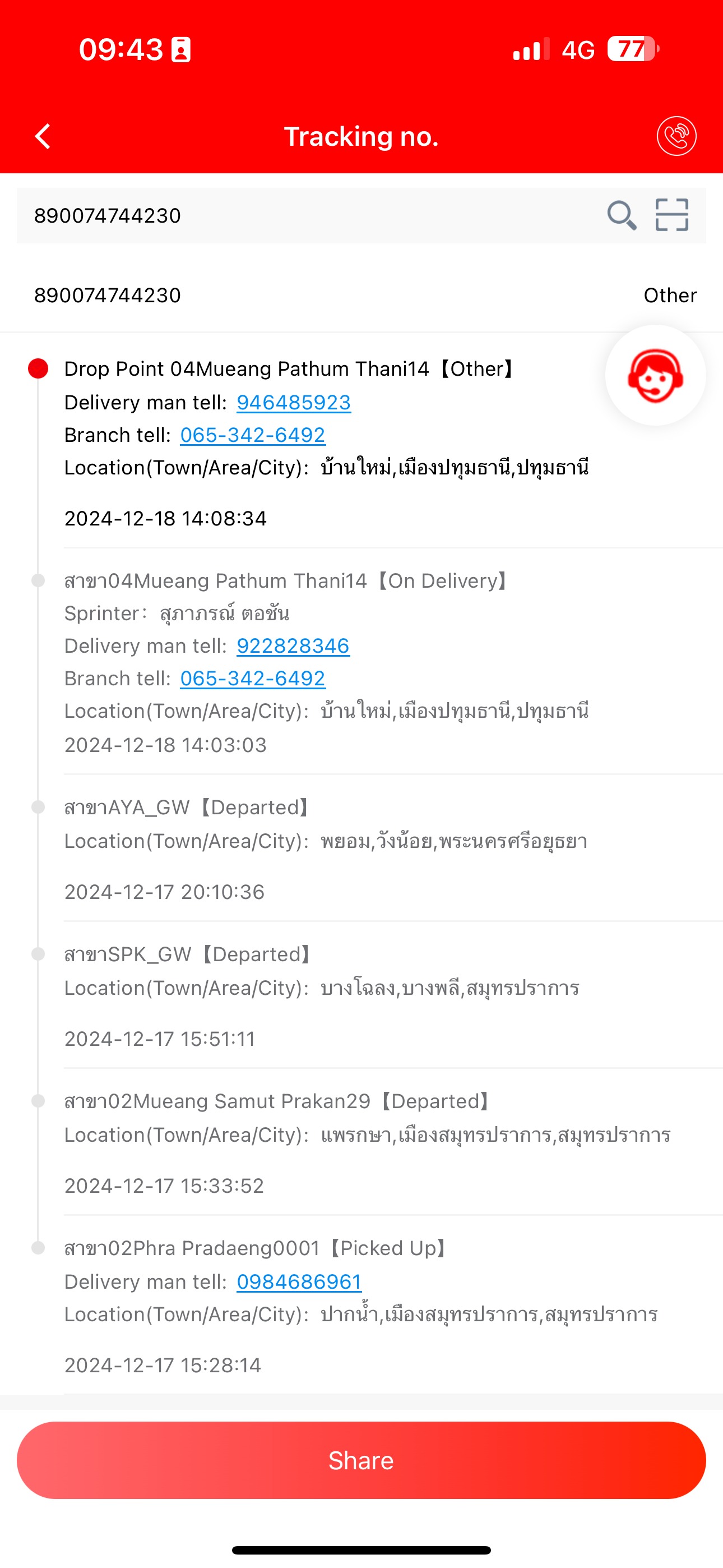 ขนส่งJ&Tของขึ้นว่าสถานะจัดส่งเเล้วมีรูปถ่าย เเต่เรายังไม่ได้รับของต้องติดต่อทางไหนได้บ้างคะ