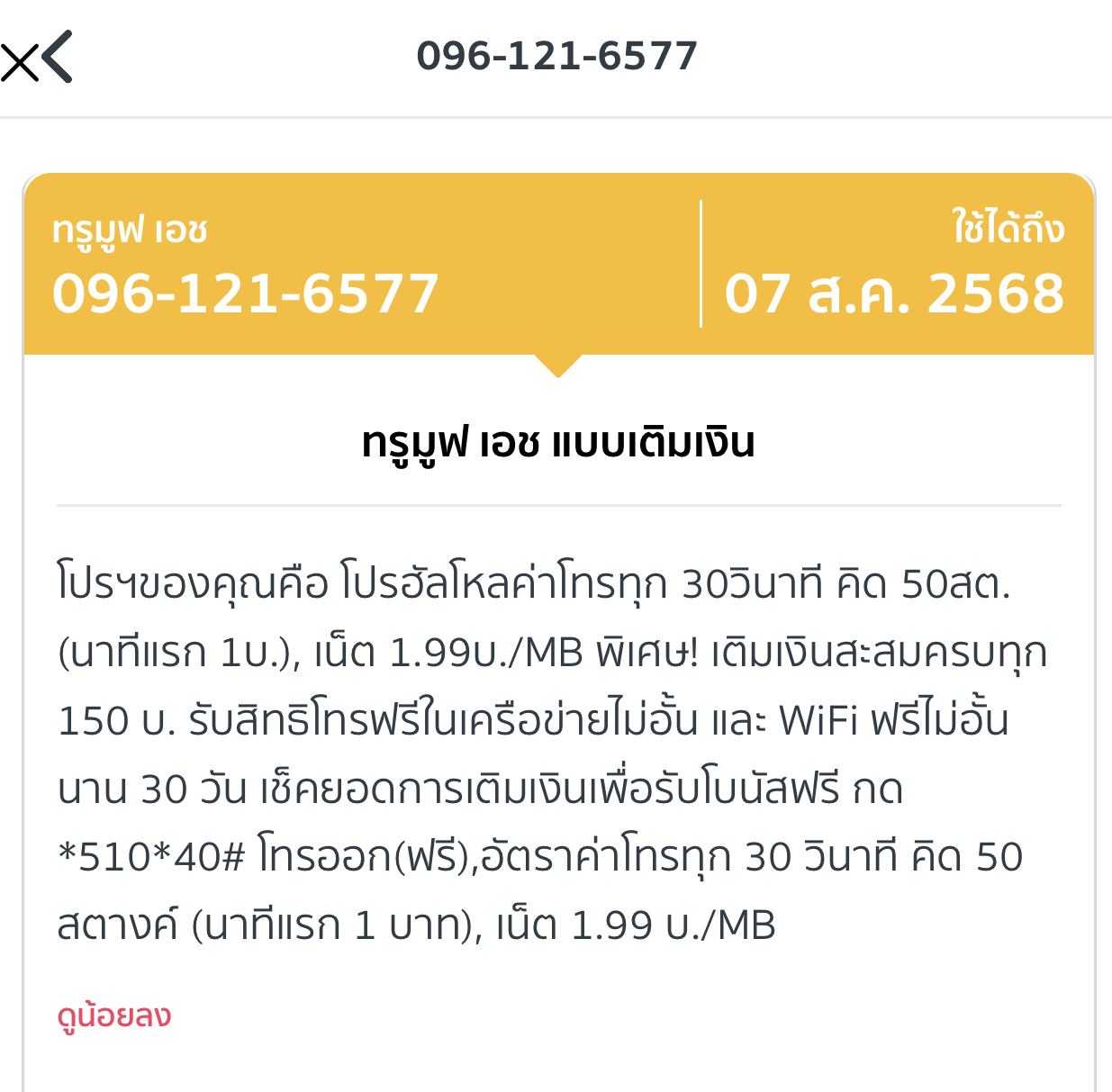 เติมเงินทรูมูฟเอชแล้วเงินหาย
