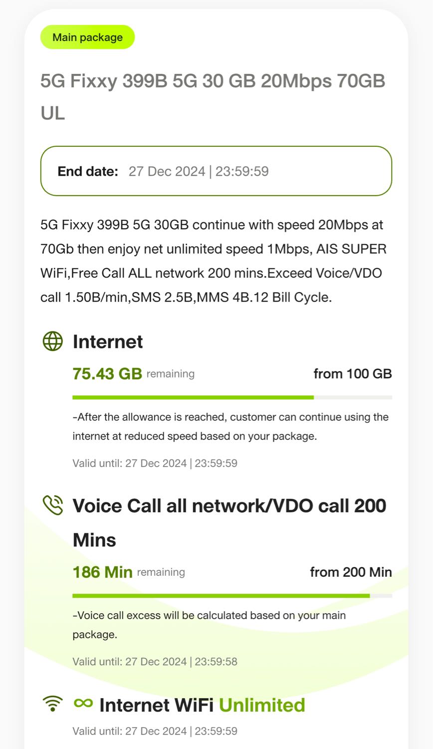 ตอนนี้ใช้ ais ได้ตามนี้ มีถูกกว่านี้มั้ยครับ ใช้เดือนนึงไม่ถึง 30gb เลย