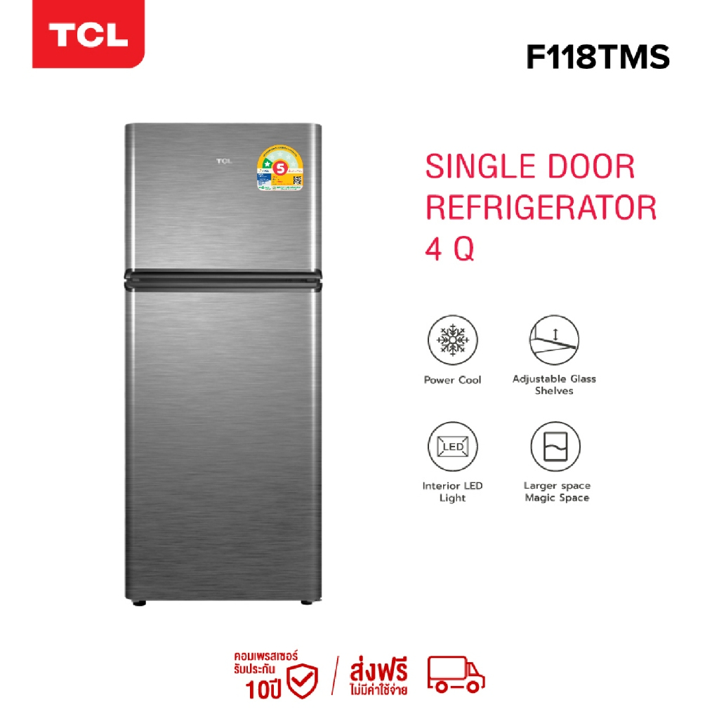🍖🥩 TCL ตู้เย็น 2 ประตู ขนาด 4Q/113L สีเงินหรือเทา รุ่น F118TMS/TMG ระบบ Defrost 🍎🥬