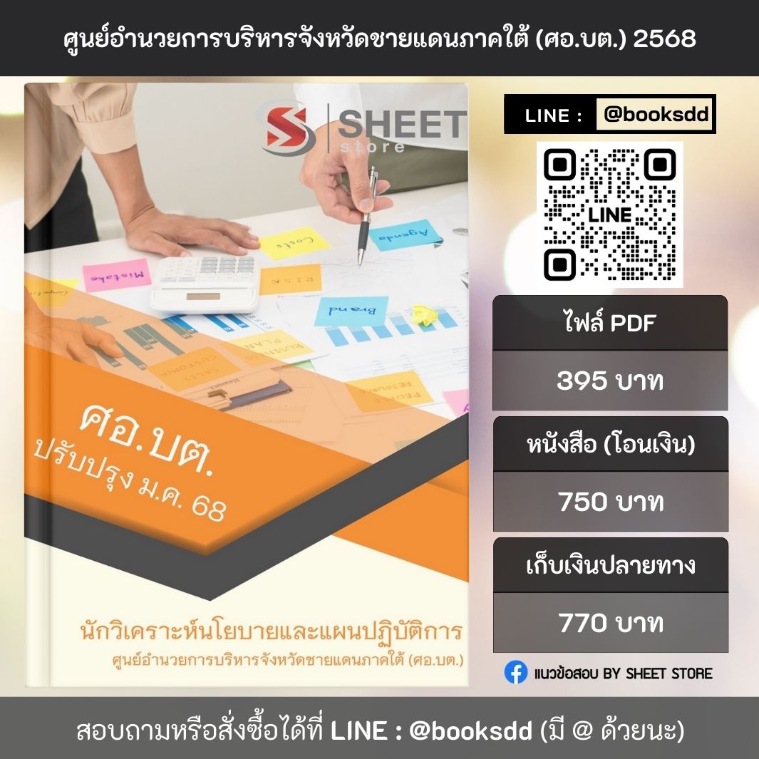 แนวข้อสอบ นักวิเคราะห์นโยบายและแผนปฏิบัติการ (ศอ.บต.) ศูนย์อำนวยการบริหารจังหวัดชายแดนภาคใต้ เนื้อหาปรับปรุงตามประกาศรับสมัครเดือน มกราคม พ.ศ.2568 สำหรับสอบ ศอ.บต. สรุปสาระสำคัญ แนวข้อสอบ พร้อมเฉลย จัดทำโดยทีมงานมืออาชีพเฉพาะตำแหน่ง