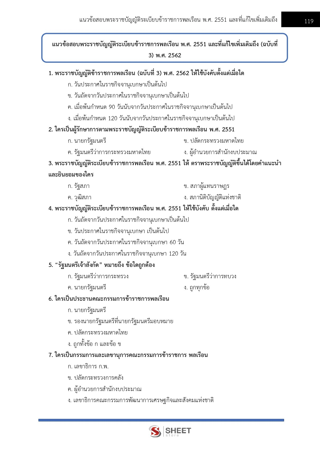 - แนวข้อสอบสรุปสาระสำคัญพระราชบัญญัติระเบียบข้าราชการพลเรือน พ.ศ. 2551 และที่แก้ไขเพิ่มเติมถึง (ฉบับที่ 3) พ.ศ. 2562