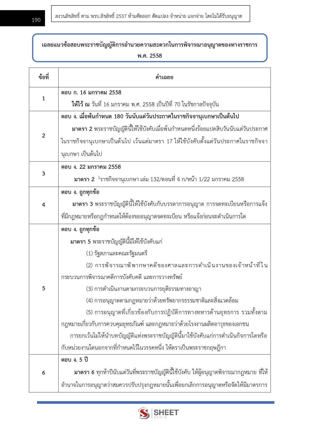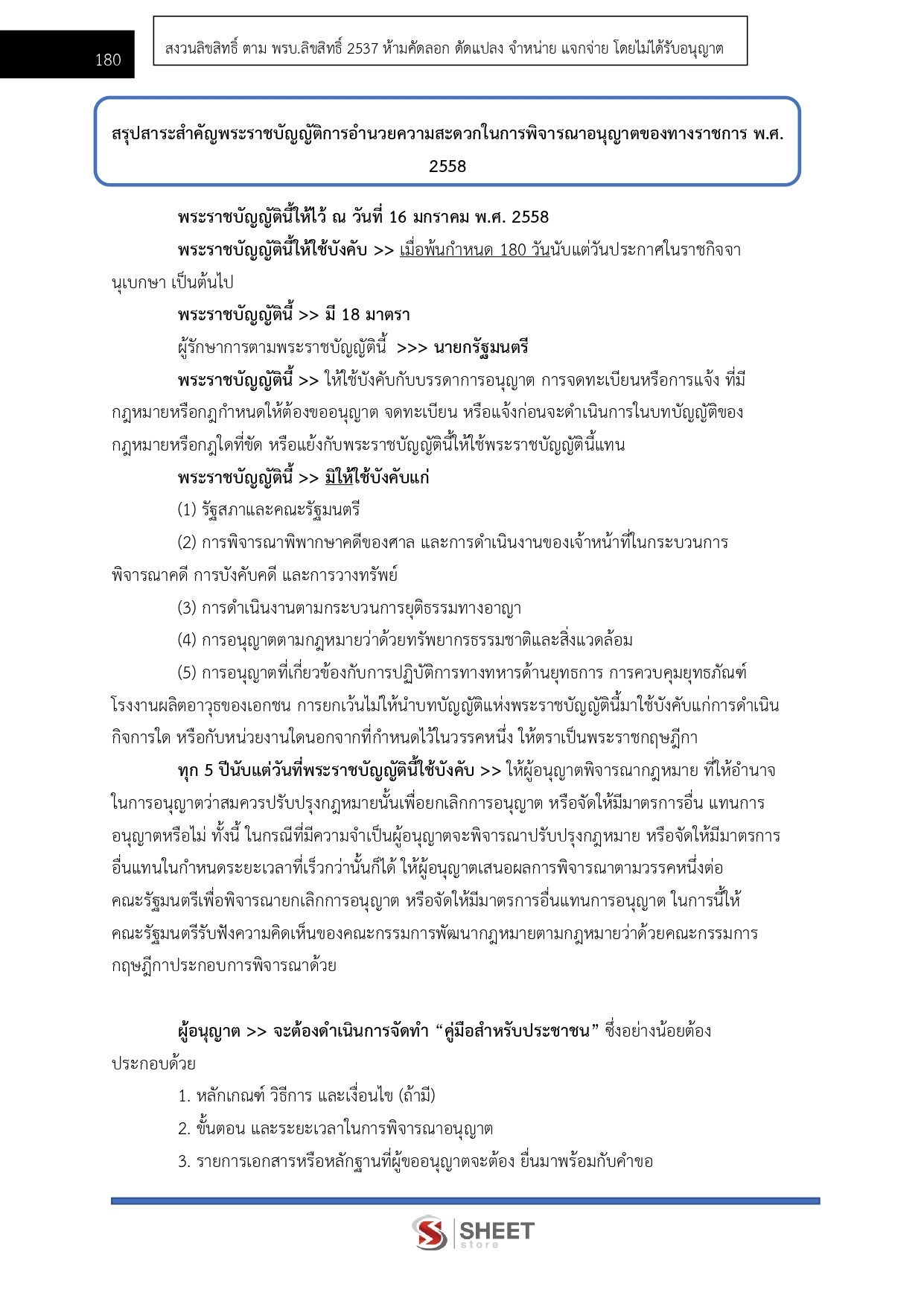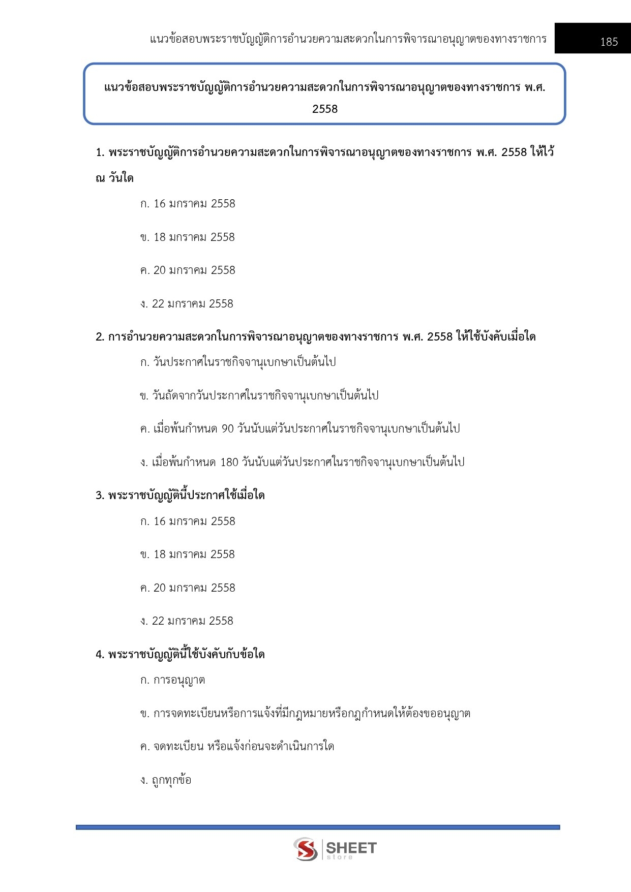 - แนวข้อสอบสรุปสาระสำคัญพระราชบัญญัติการอำนวยความสะดวกในการพิจารณาอนุญาตของทางราชการ พ.ศ. 2558