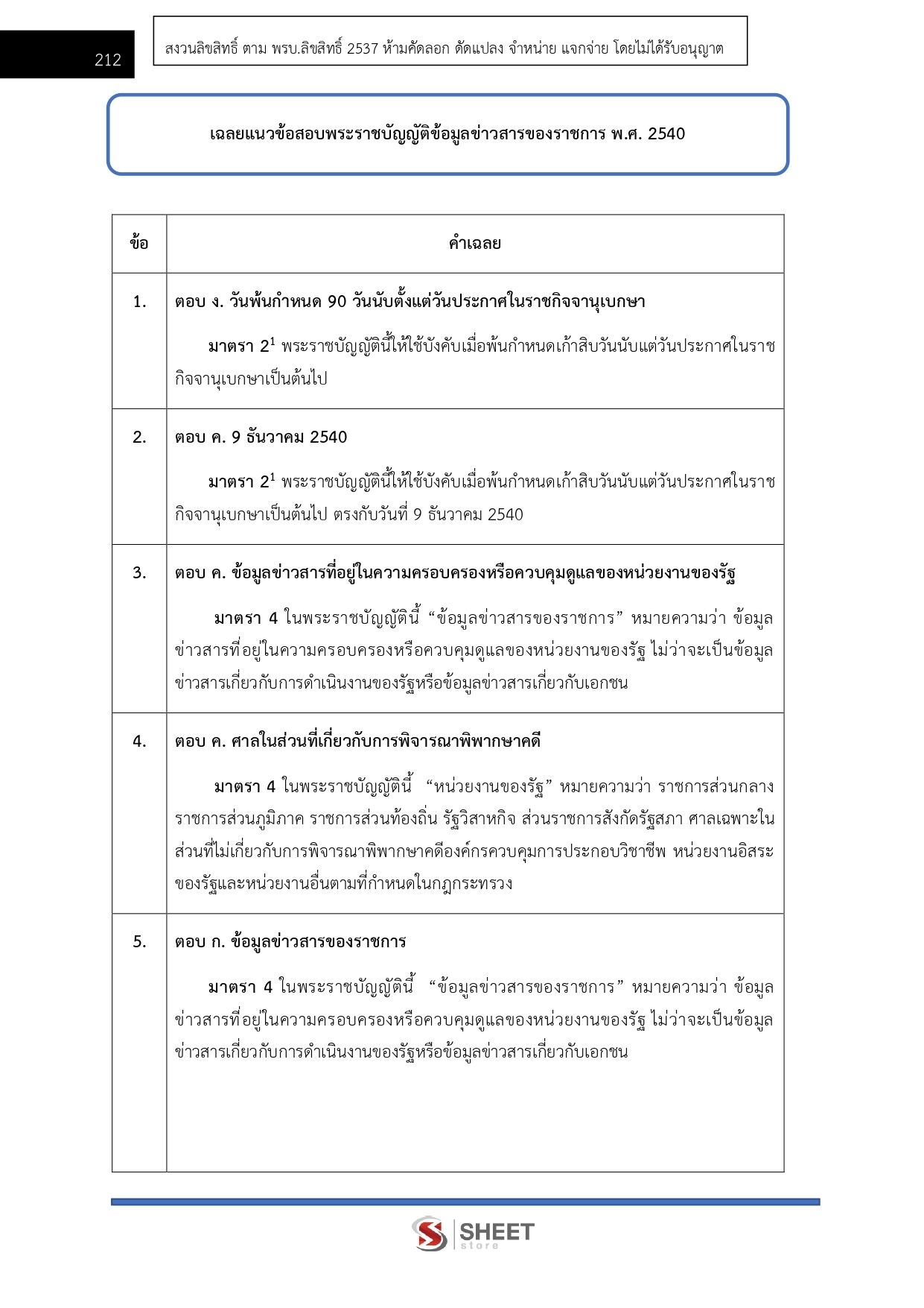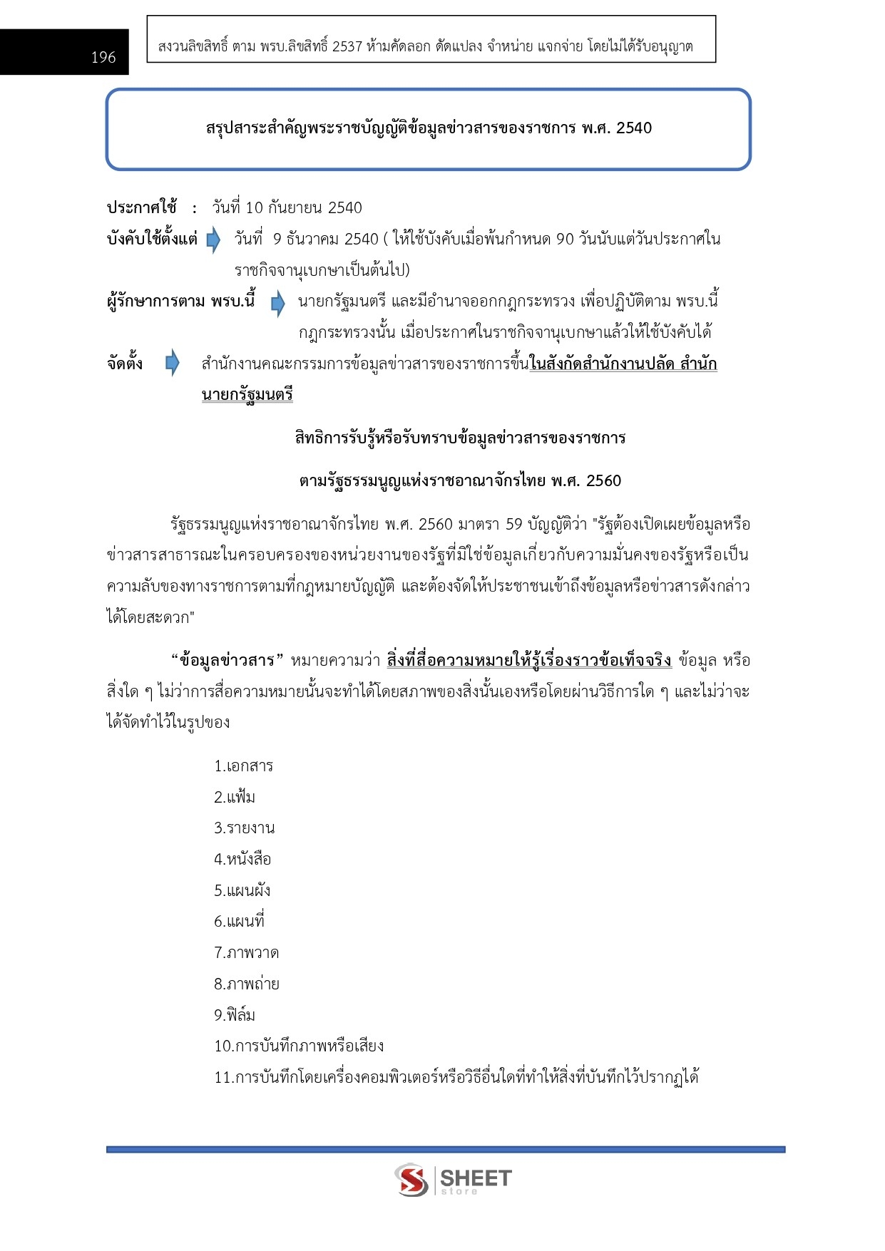 - แนวข้อสอบสรุปสาระสำคัญพระราชบัญญัติข้อมูลข่าวสารของราชการ พ.ศ. 2540