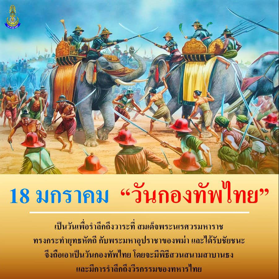 18 มกราคม 2567 "#วันกองทัพไทย" 432 ปี #วันยุทธหัตถี เป็นวันที่ระลึกในวาระที่สมเด็จพระนเรศวรมหาราชทรงกระทำยุทธหัตถีกับพระมหา อุปราชาของพม่า โดยถือเอาวันที่ 18 มกราคม ของทุกปี เป็น &qu