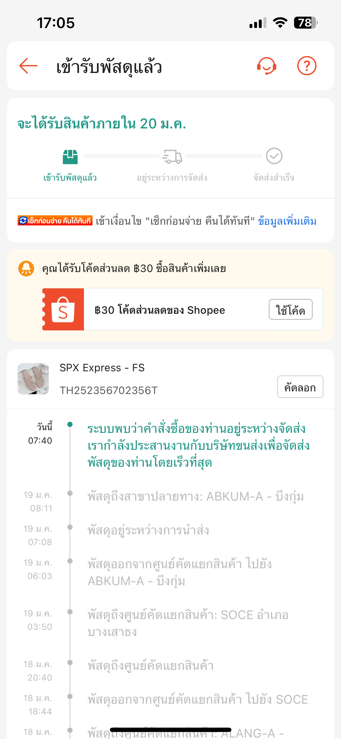 คือว่าผมได้สั่งของจาก Shopee ตั่งแต่ในวันที่ 14 มค. 68 แต่นี้ก็ผ่านมา 5 วันแล้ว สิ่งที่เจอคือ จัดส่งไม่สำเร็จเลยสักครั้ง ทั้งที่ไม่มีการโทรมาหา ไม่มีการมาแจ้งอะไรเลย ทางผมก็ได้ติดต่อ Support ของ Shope