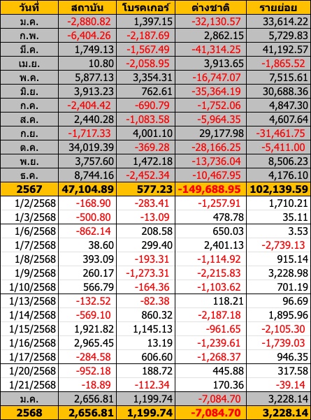 Sinthorn Summary 21/1/2569 : ต่างชาติขายสุทธิ -2,016.54 ลบ.