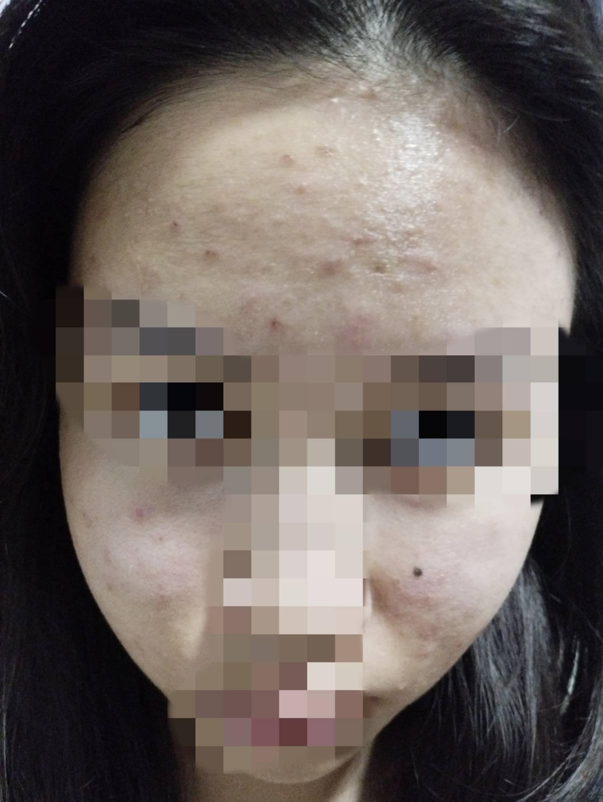 อาการ : อุดตัน สิวหัวหนอง ได้บีบทุกวัน หน้ามีรอยเพราะบีบอีก