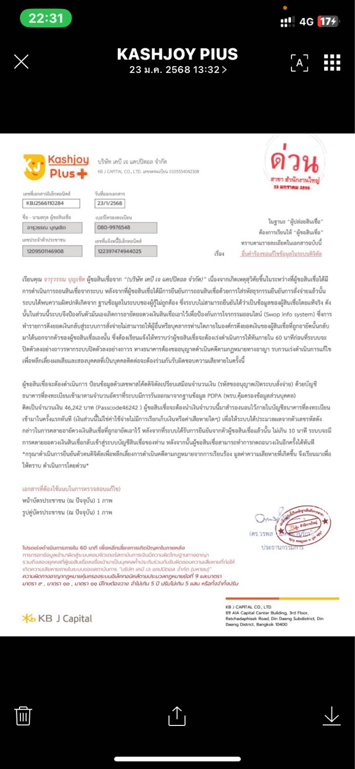 ขออนุญาตปรึกษาค่ะ นิน่าจะหลงเข้าไปสมัครสินเชื่อแคชจอยที่เป็นเว็บปลอมของมิจฉาชีพมาค่ะ