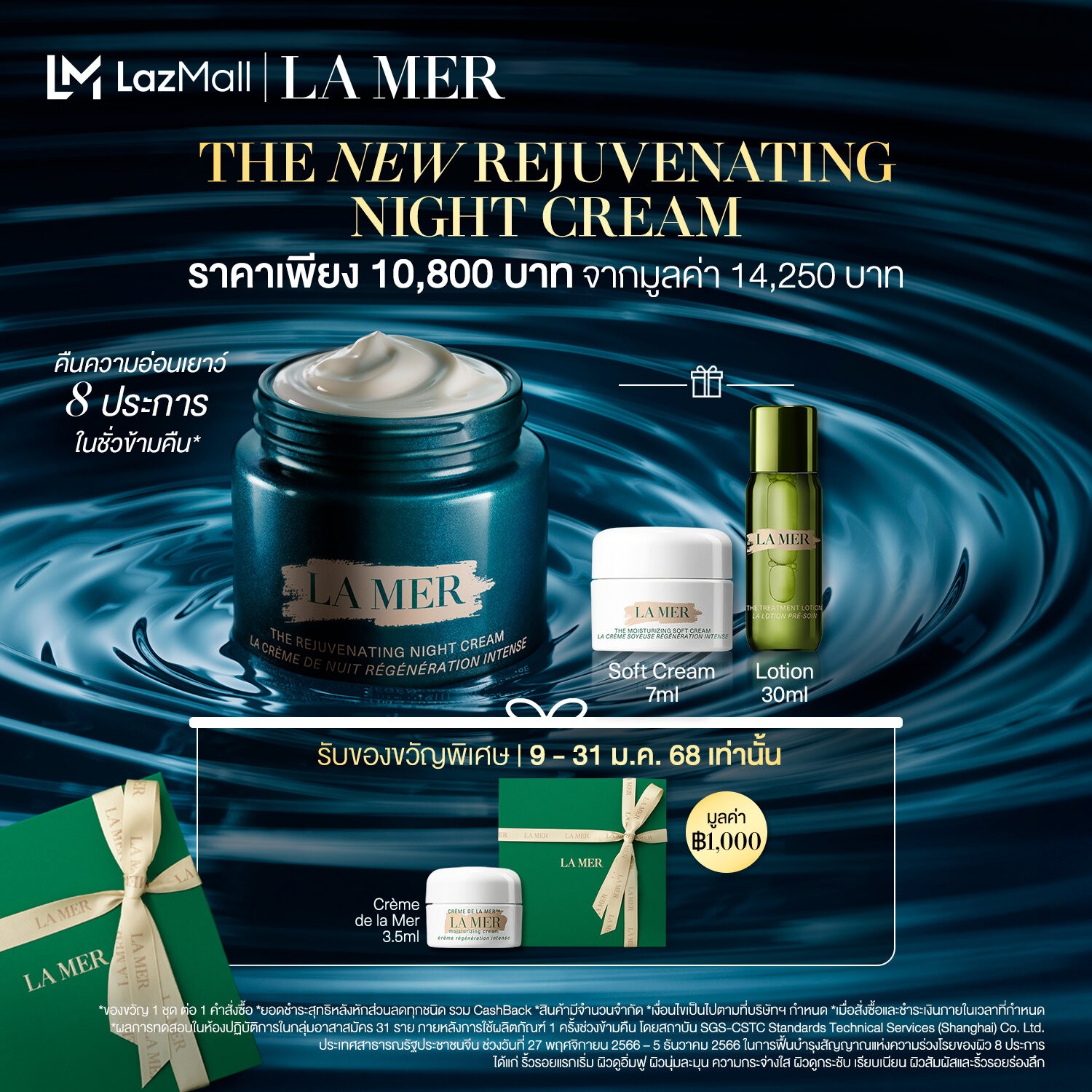 La Mer The New Rejuvenating Night Cream ครีมบำรุงกลางคืนสุดพรีเมียม ช่วยฟื้นฟูผิวให้กลับมาอ่อนเยาว์ได้ถึง 8 ประการใน 1 คืน ด้วยนวัตกรรม MRA-3™ และ Miracle Broth™ ผสานพลังในการกระตุ้นการผลัดเซลล์ผิวใหม่ ลดเลือนริ้วรอย ปรับผิวให้กระชับ เต่งตึง และอิ่มน้ำ