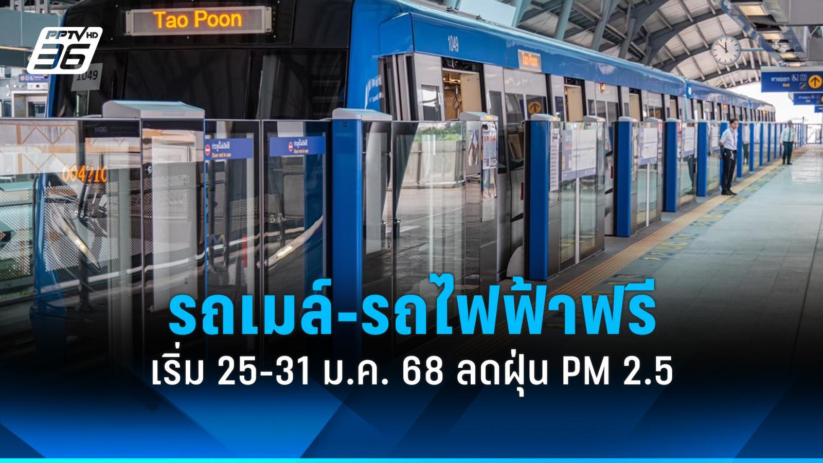 กรมการขนส่งทางรางเผยรถไฟฟ้าฟรีวันแรกตามมาตรการลดฝุ่นละออง PM2.5 ในเขตกรุงเทพมหานครและปริมณฑลของรัฐบาล พบว่ามีผู้ใช้บริการรถไฟฟ้ารวม 1.63 ล้านคน-เที่ยว เพิ่มขึ้นร้อยละ 45.29 เมื่อเทียบกับค่าเฉลี่ยวันเสาร์ในสามสัปดาห์ของเดือนมกราคม 2568