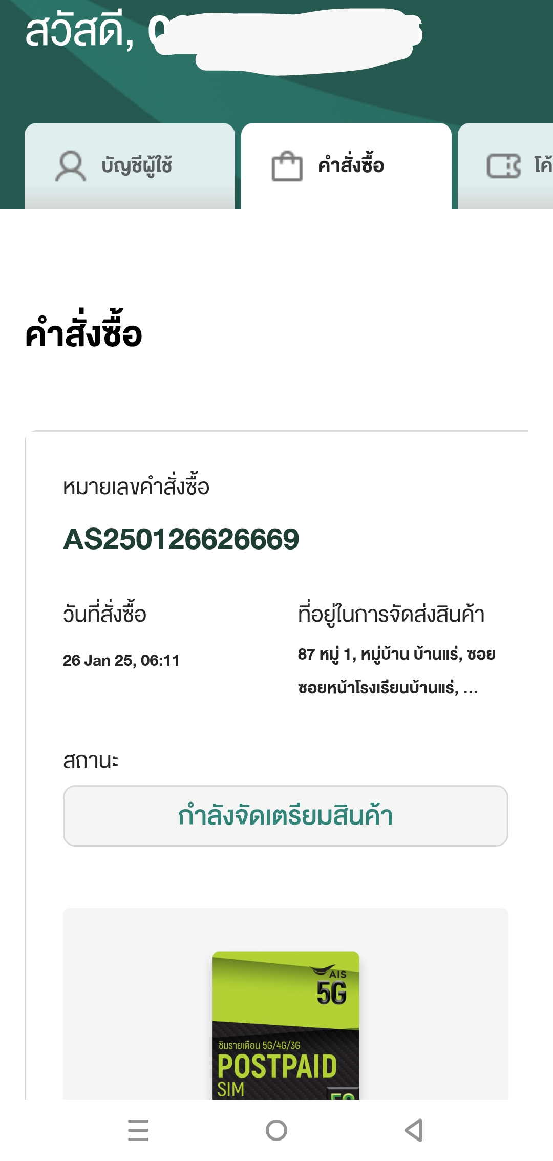 ซิมรายเดือนที่เราซื้อไป เขาจะเริ่มจัดส่งตอนไหนเหรอครับ อยากทราบคนที่เคยสั่งของ จากAIS