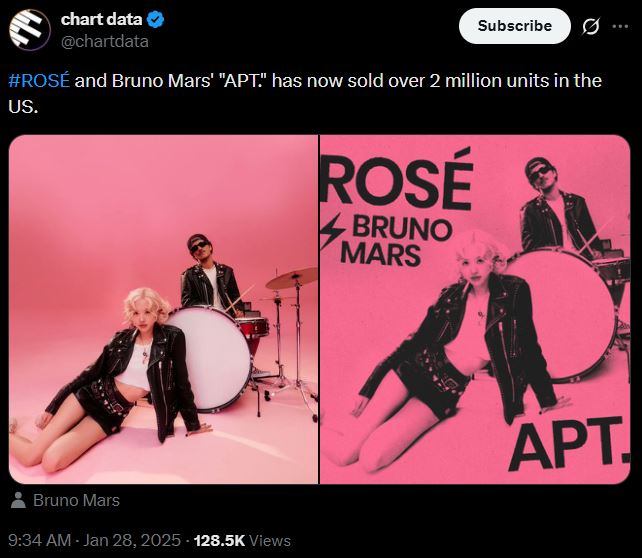 ⚡ APT. จาก ROSÉ & Bruno Mars มียอดขายทะลุ 2 ล้านยูนิต ในสหรัฐอเมริกา 🇺🇸 🎉