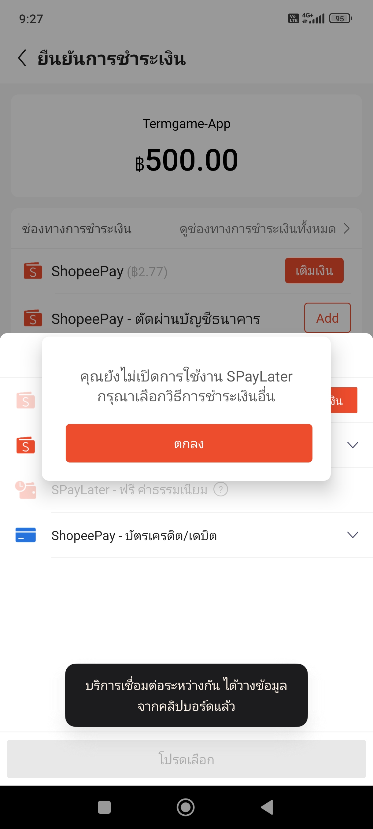 ทำไมSpayLater จ่ายเงินไม่ได้