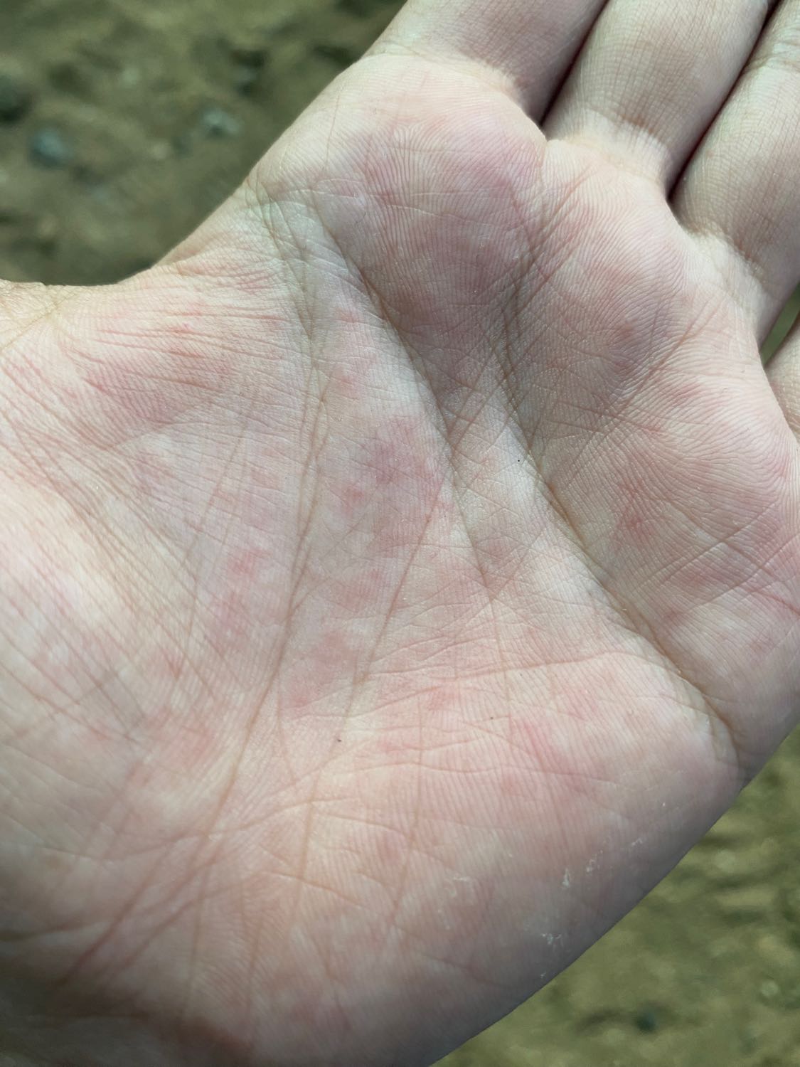 มือเป็นผื่นน่าจะเกิดจากอะไรคะ ควรไปหาหมอดีมั๊ยคะ?
