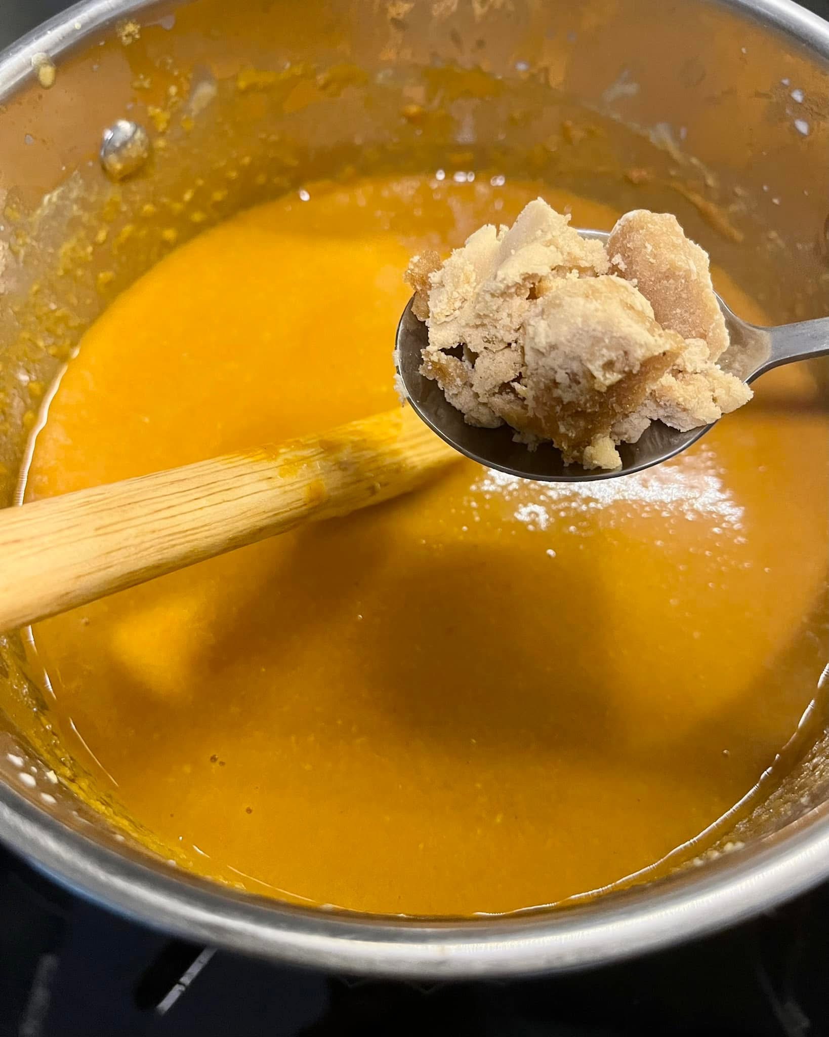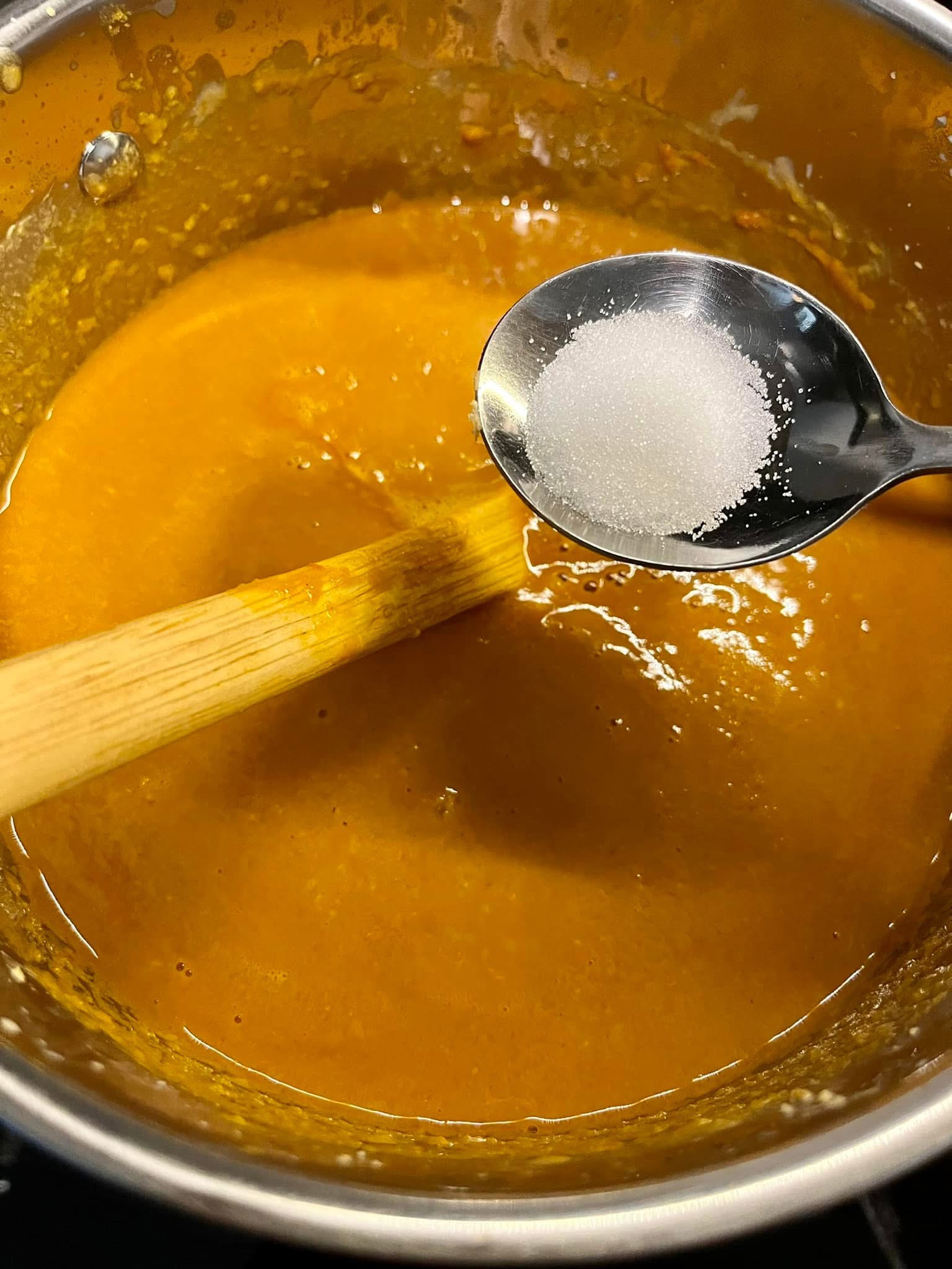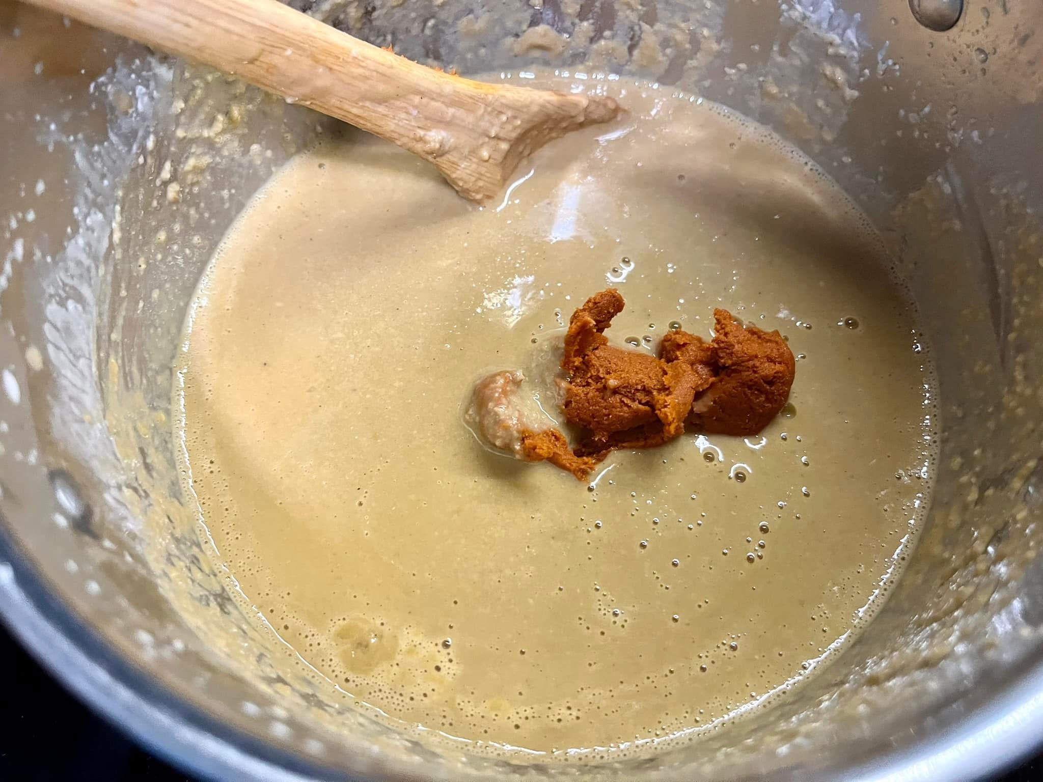 - นำปรุงรสด้วย น้ำตาลปี๊บ น้ำปลา เกลือเล็กน้อย คนให้เข้ากัน