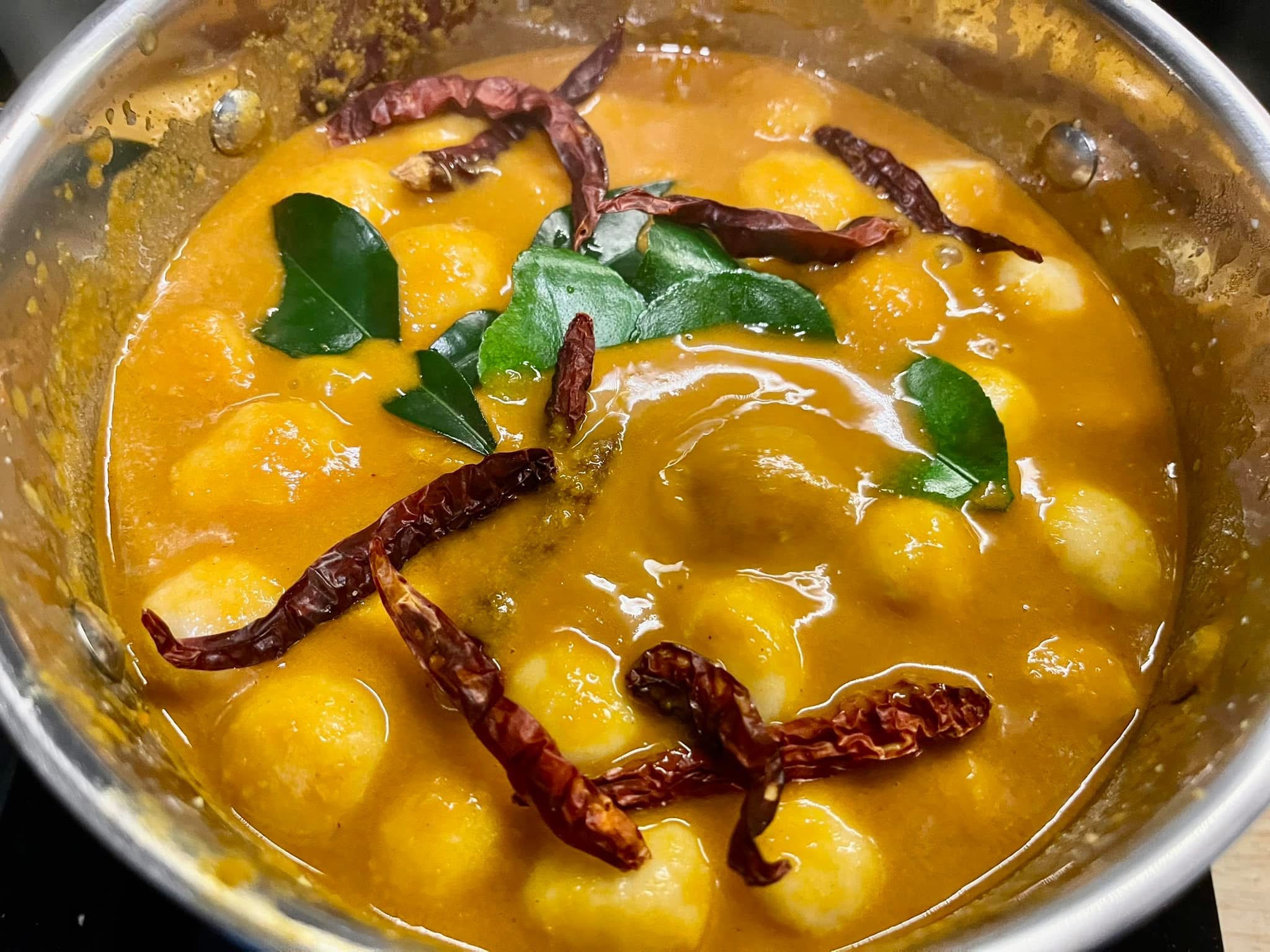 - นำใบมะกรูด พริกแห้งโรยลงในหม้อ คนให้เข้ากันปิดเตา จัดจานเตรียมเสิร์ฟได้