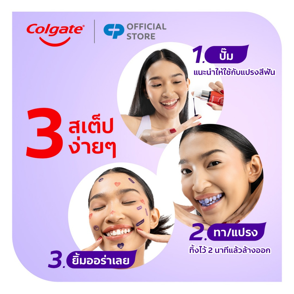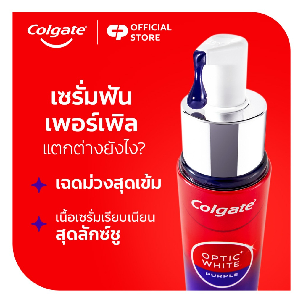 Colgate Optic White Purple Serum เซรั่มฟันขาวสูตรใหม่ล่าสุดจากคอลเกต ด้วยแรงบันดาลใจจากทฤษฎีแสงสีม่วง ช่วยปรับลดโทนสีเหลืองของฟัน ให้ฟันดูขาวขึ้นทันทีหลังใช้ (ผลลัพธ์ชั่วคราว) ใช้งานง่ายๆ เพียง 3 ขั้นตอน ปั๊ม-ทา/แปรง-ยิ้ม ปลอดภัยต่อเคลือบฟันเมื่อใช้ตามคำแนะนำ