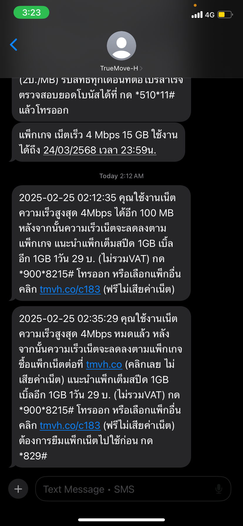 คือเราสม แพ็กเกจ เน็ตไม่จำกัด เร็ว 4 Mbps จำนวน 15GB หลังจากนั้นเร็ว 64Kbps และ WiFi ไม่ จำกัด หักค่าบริการ 150 บ. ทุกเดือน นาน 6 เดือน ใช้งานได้ถึง 03/07/2025 23:59:59 แต่เราใช้ได้ไม่ถึง5วันขึ้นข้อค