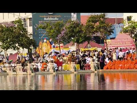 ถึงเวลาเริ่มงานพิธีอัญเชิญพระอุปคุด และเปิดงานมหาทานบารมี ประเพณีบุญผะเหวดร้อยเอ็ด บริเวณริมบึงพลาญชัย