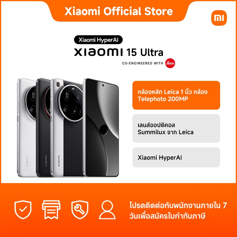 Xiaomi 15 Ultra สมาร์ทโฟนเรือธงกล้องเทพ กล้องหลัก Leica 1 นิ้ว กล้อง Telephoto 200MP ซูมไกลคมชัด เลนส์ออปติคอล Summilux จาก Leica ให้ภาพสวยสมจริง RAM 16GB ROM 512GB/1024GB แรงลื่นไหล เหมาะสำหรับผู้ที่ต้องการมือถือกล้องที่ดีที่สุด