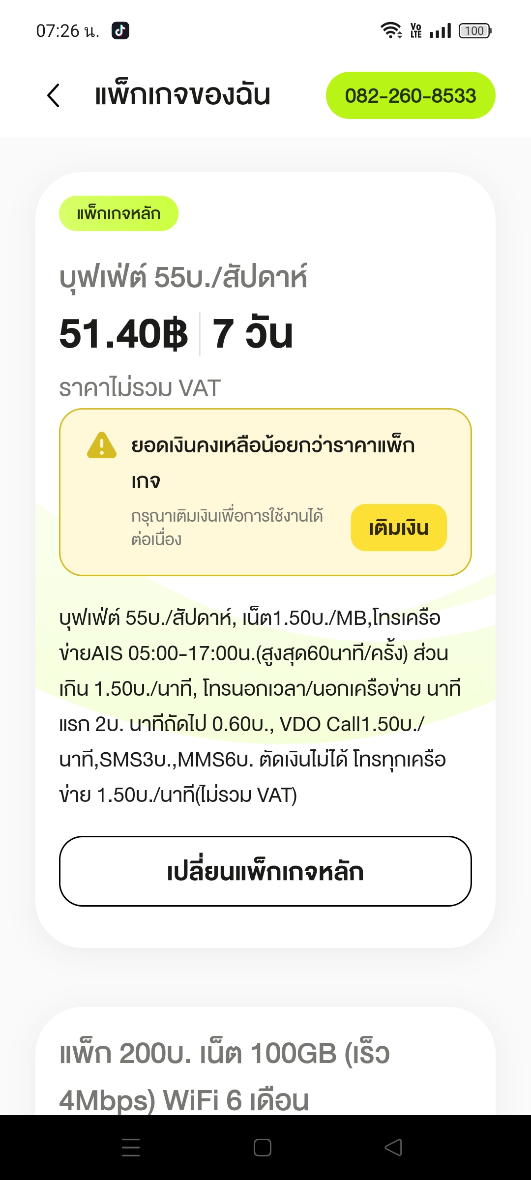 ปกติเราใช้แพ็กเกจ150บาทค่ะ มันพึ่งมาปรับราคาน่าจะเดือนก่อนค่ะ แล้วทีนี้เราปิดเทอมอยู่บ้านใช้ไวไฟบ้าน เลยพึ่งมาเห็นว่ามันหมดวันที่19 ปกติเราเติมตามสัดส่วนค่ะ 15วัน พอวันนี้เราเติมตามปกติ smsไม่แจ้งหัก