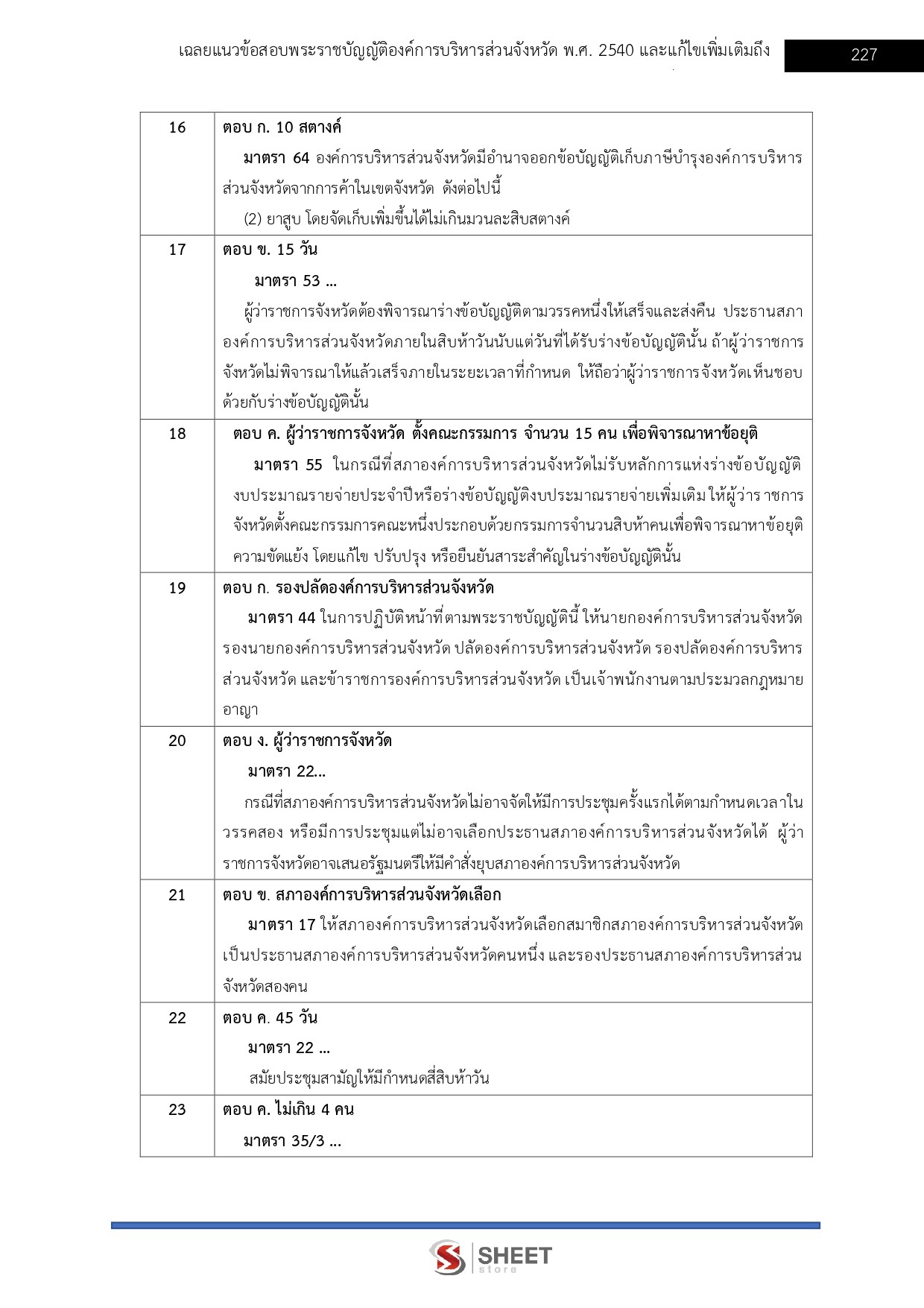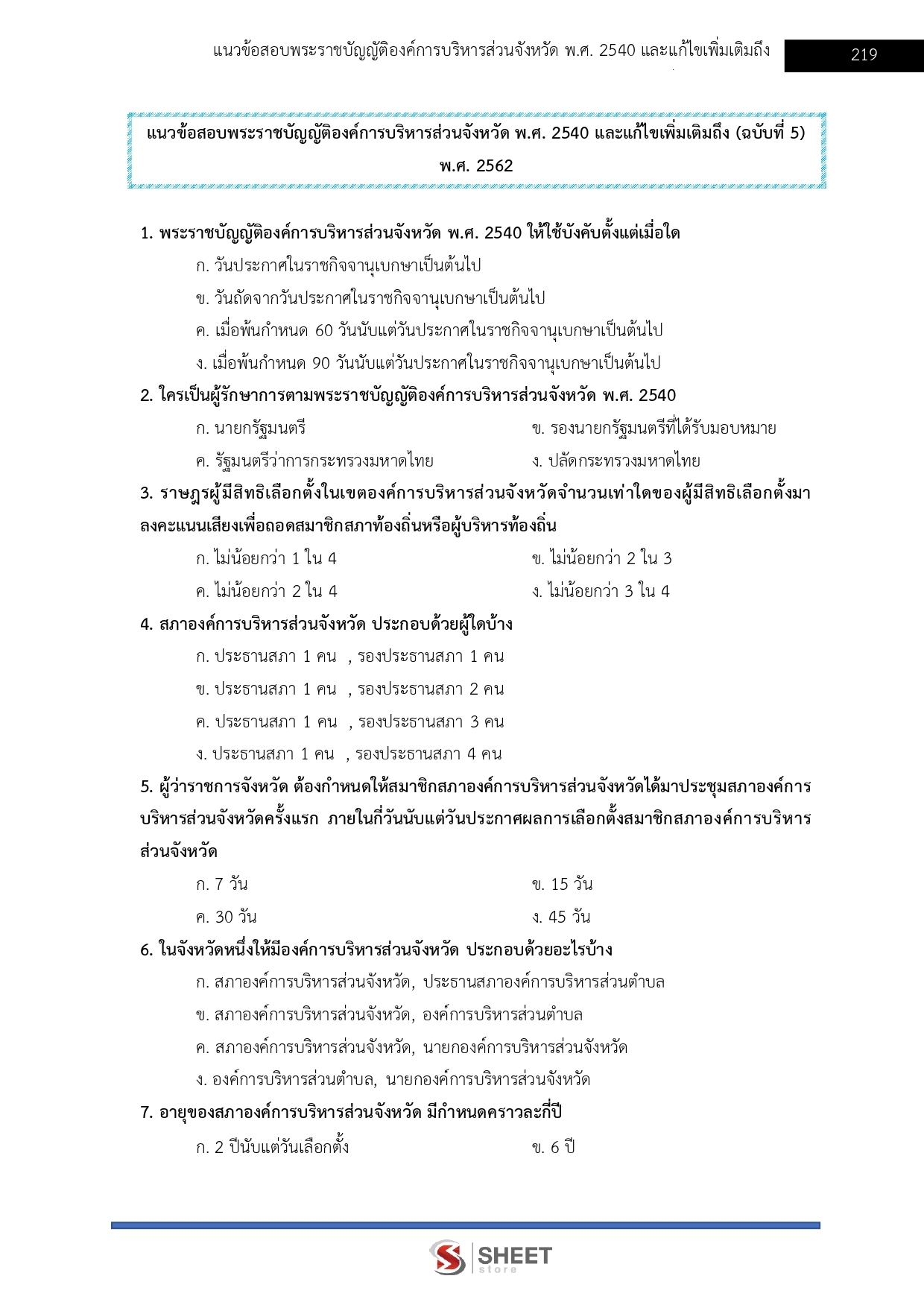 - แนวข้อสอบพระราชบัญญัติองค์การบริหารส่วนจังหวัด พ.ศ. 2540 และที่แก้ไขเพิ่มเติมถึง (ฉบับที่ 5) พ.ศ. 2562