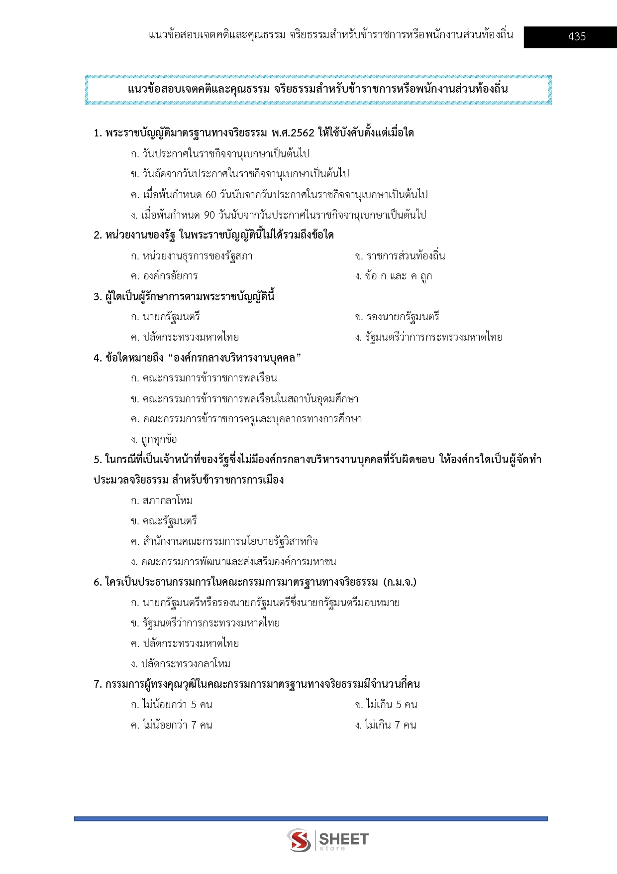 - แนวข้อสอบพระราชกฤษฎีกาว่าด้วยหลักเกณฑ์และวิธีการบริหารบ้านเมืองที่ดี พ.ศ. 2546 และที่แก้ไขเพิ่มเติม พ.ศ. 2562
